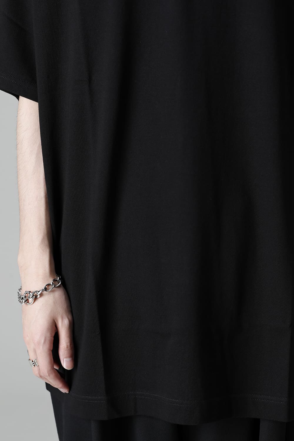 This is a round-neck sleeve T-shirt made of standard high-gauge Jersey stitch. This season, this item is developed as a new round neck. The wide opening of the neck like a boat neck has been made as narrow as a general round neck, and it is a neckline that does not worry about the deviation of the neck to the left and right.