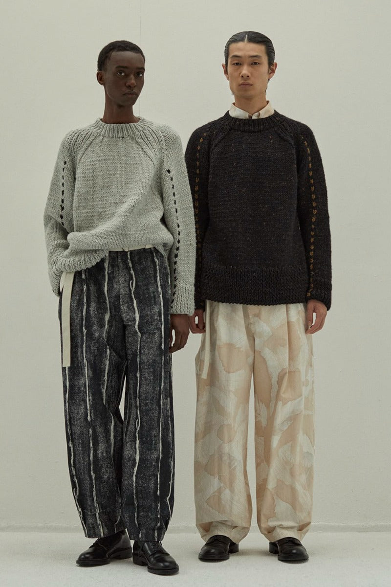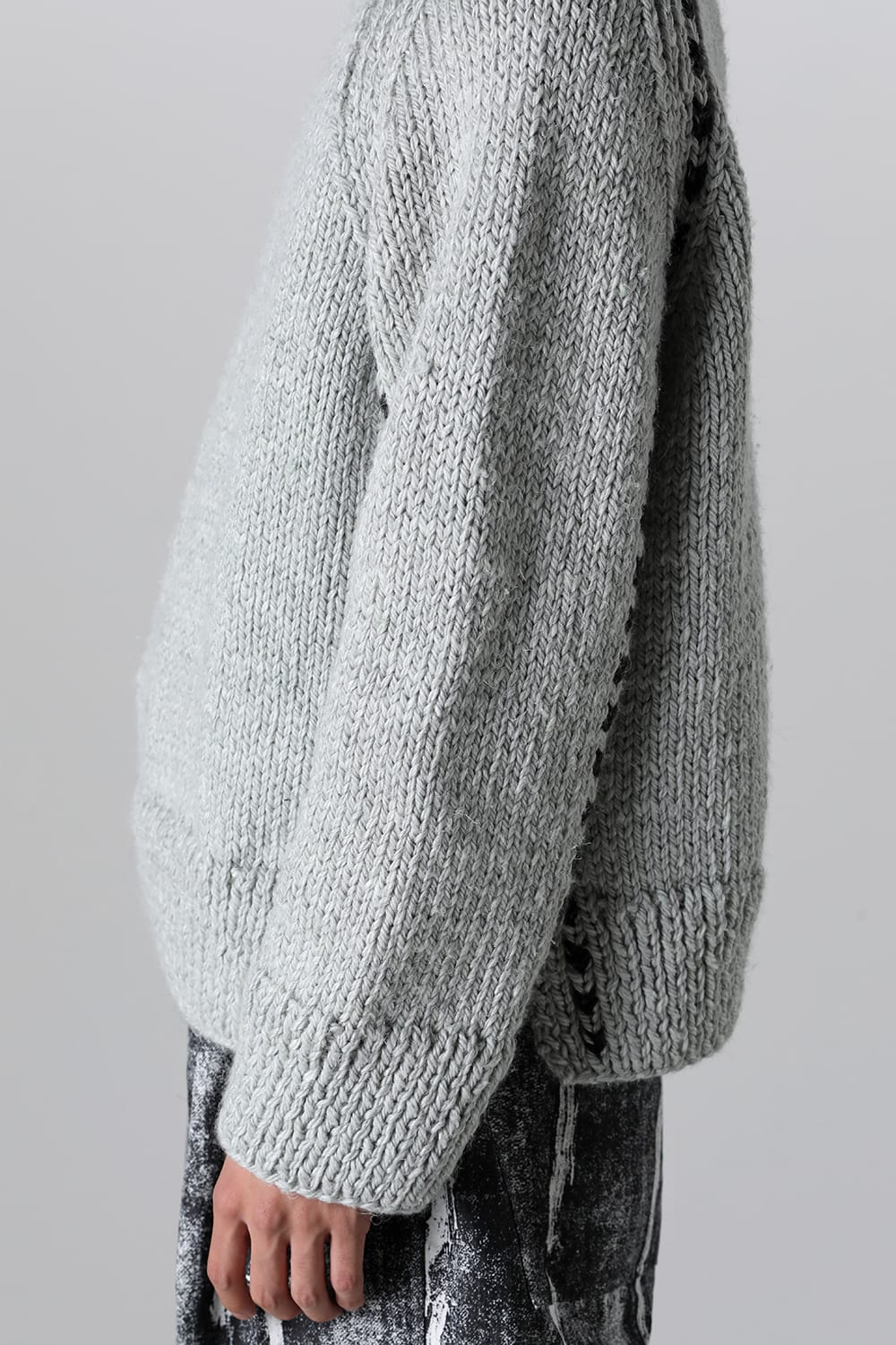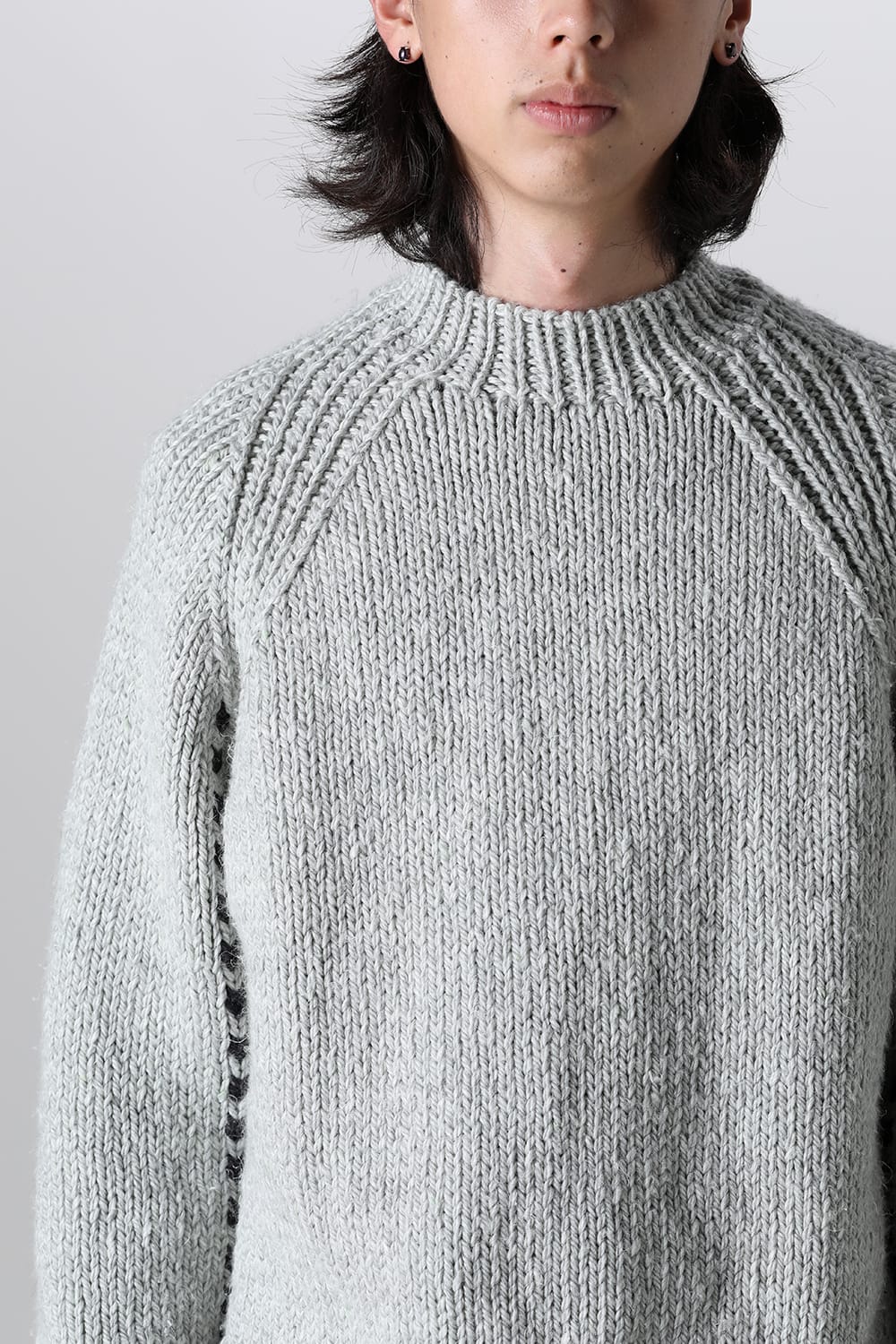 The knitted yarn is made by a domestic spinning company, and is made with original merino wool blended with linen from the fiber state.