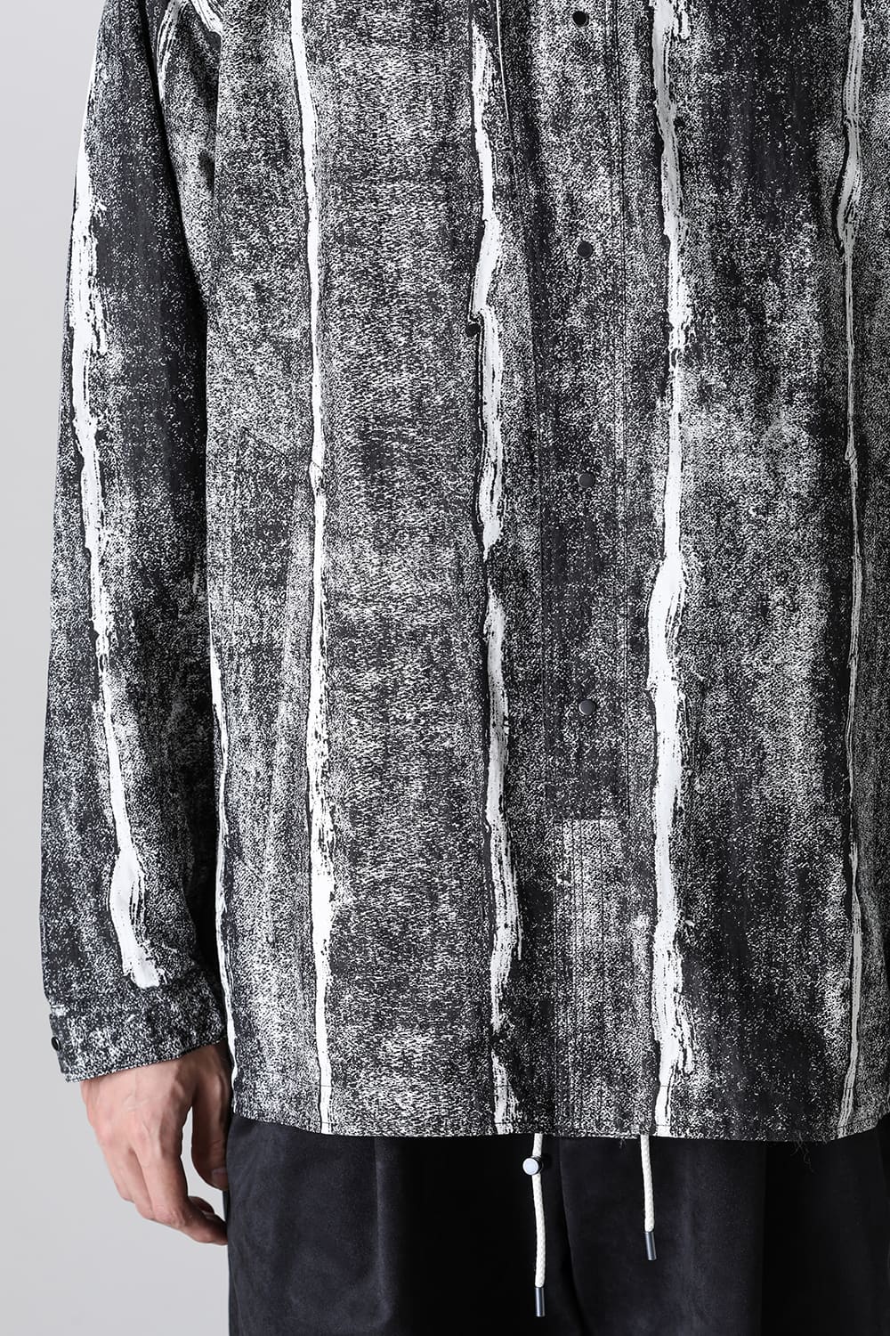 Hooded blouson in cotton nylon with drawing stripe pattern.