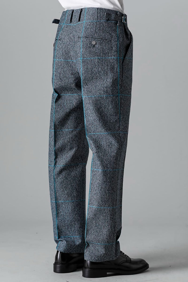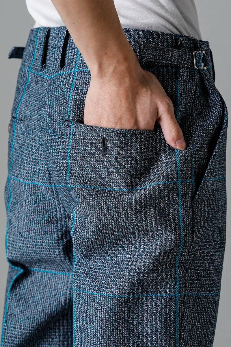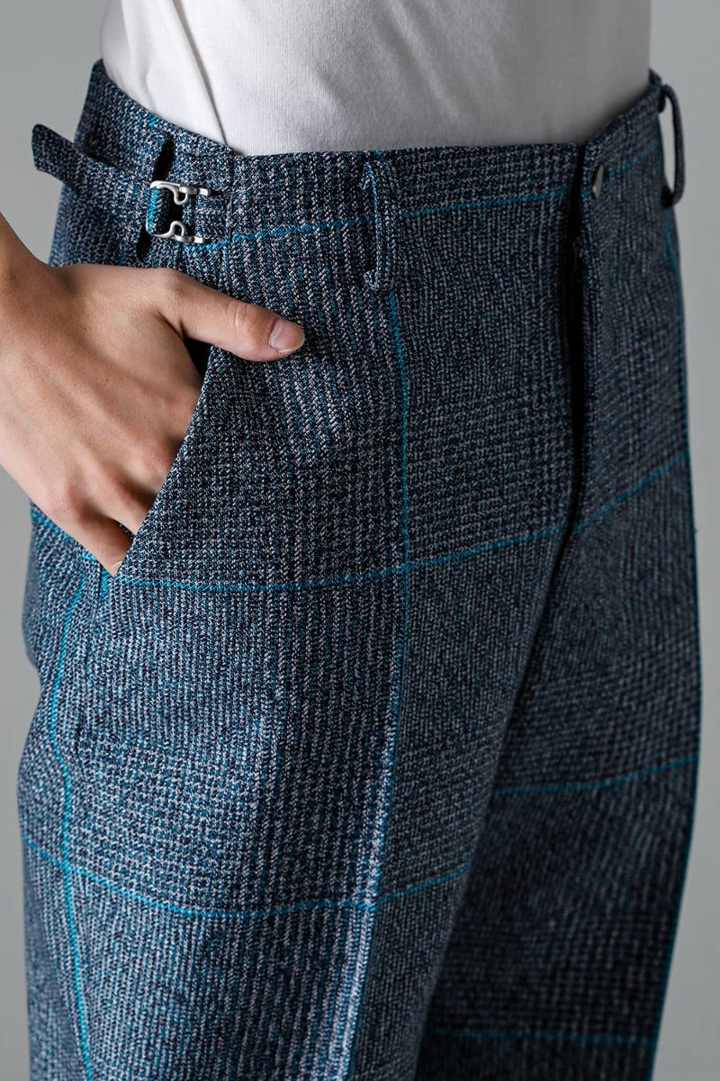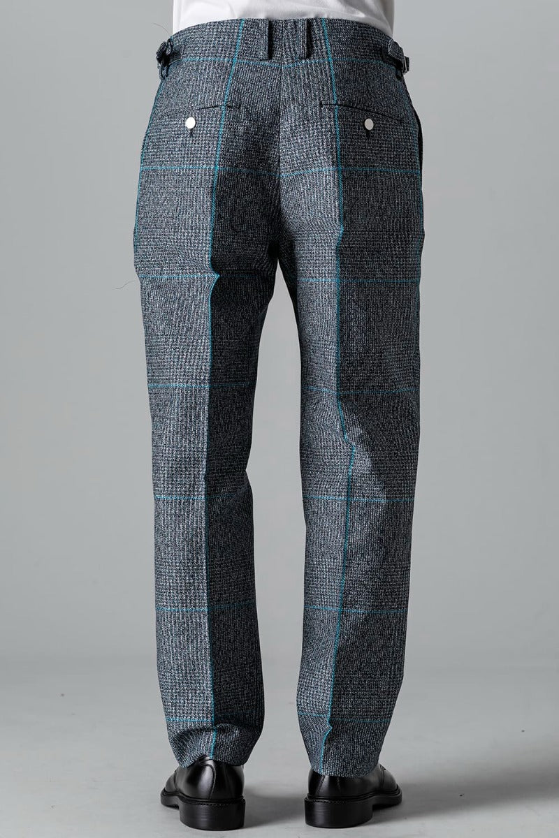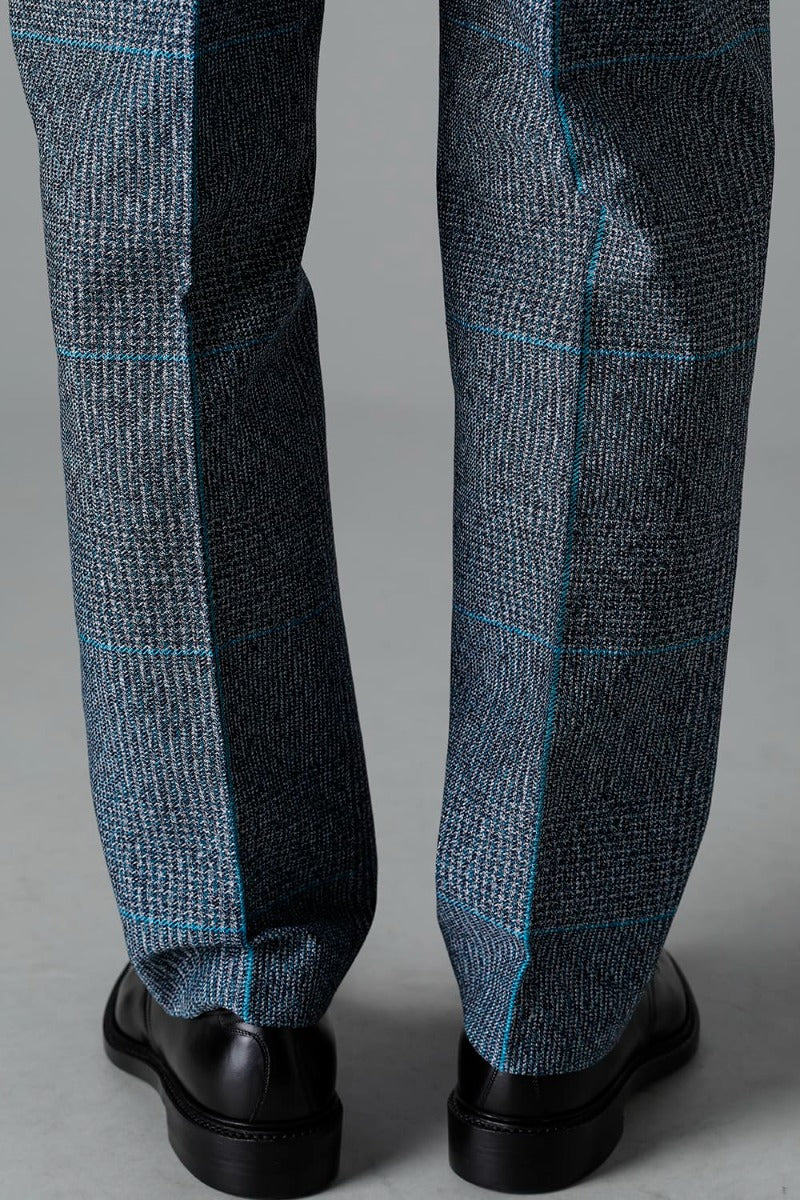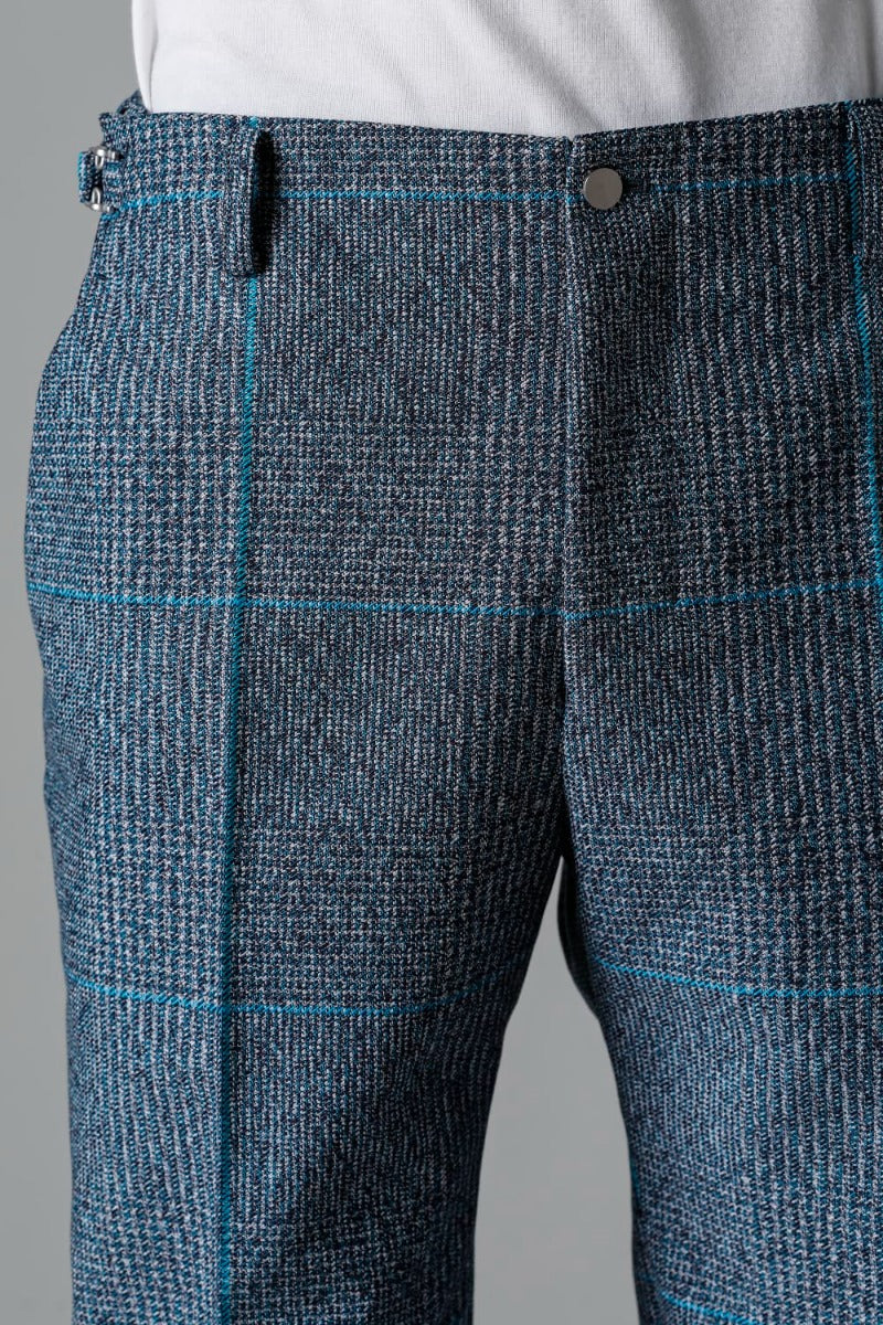No-tuck straight pants in original cotton-polyester check fabric with tailored front lining