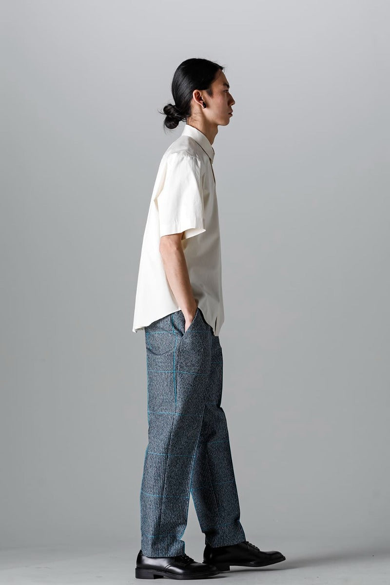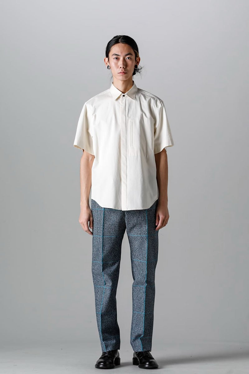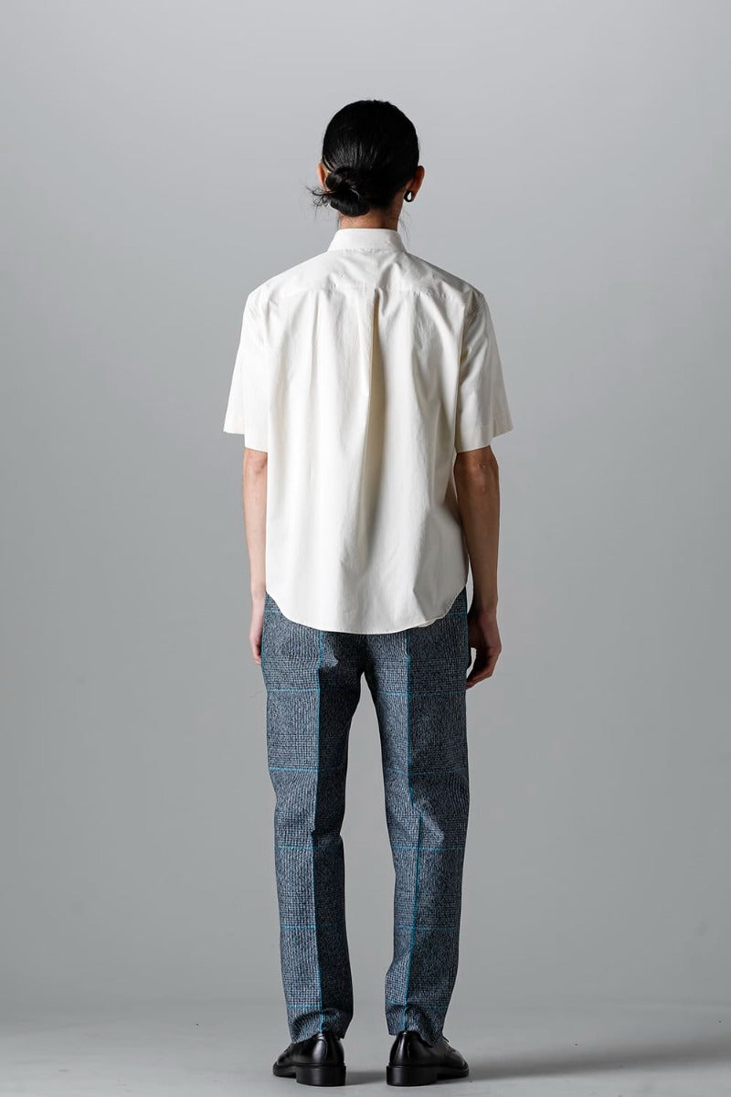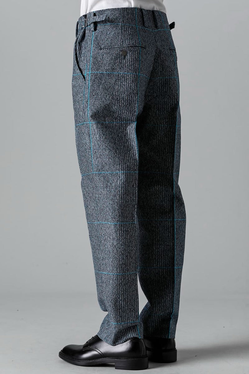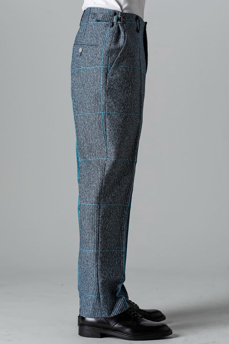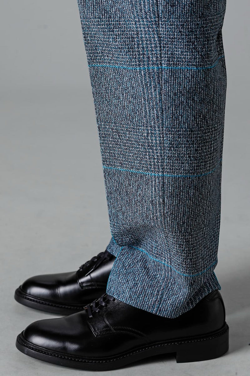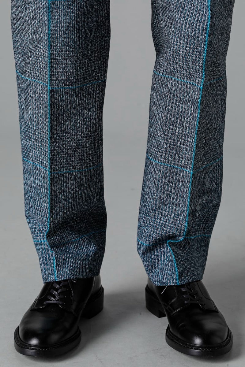 No-tuck straight pants in original cotton-polyester check fabric with tailored front lining