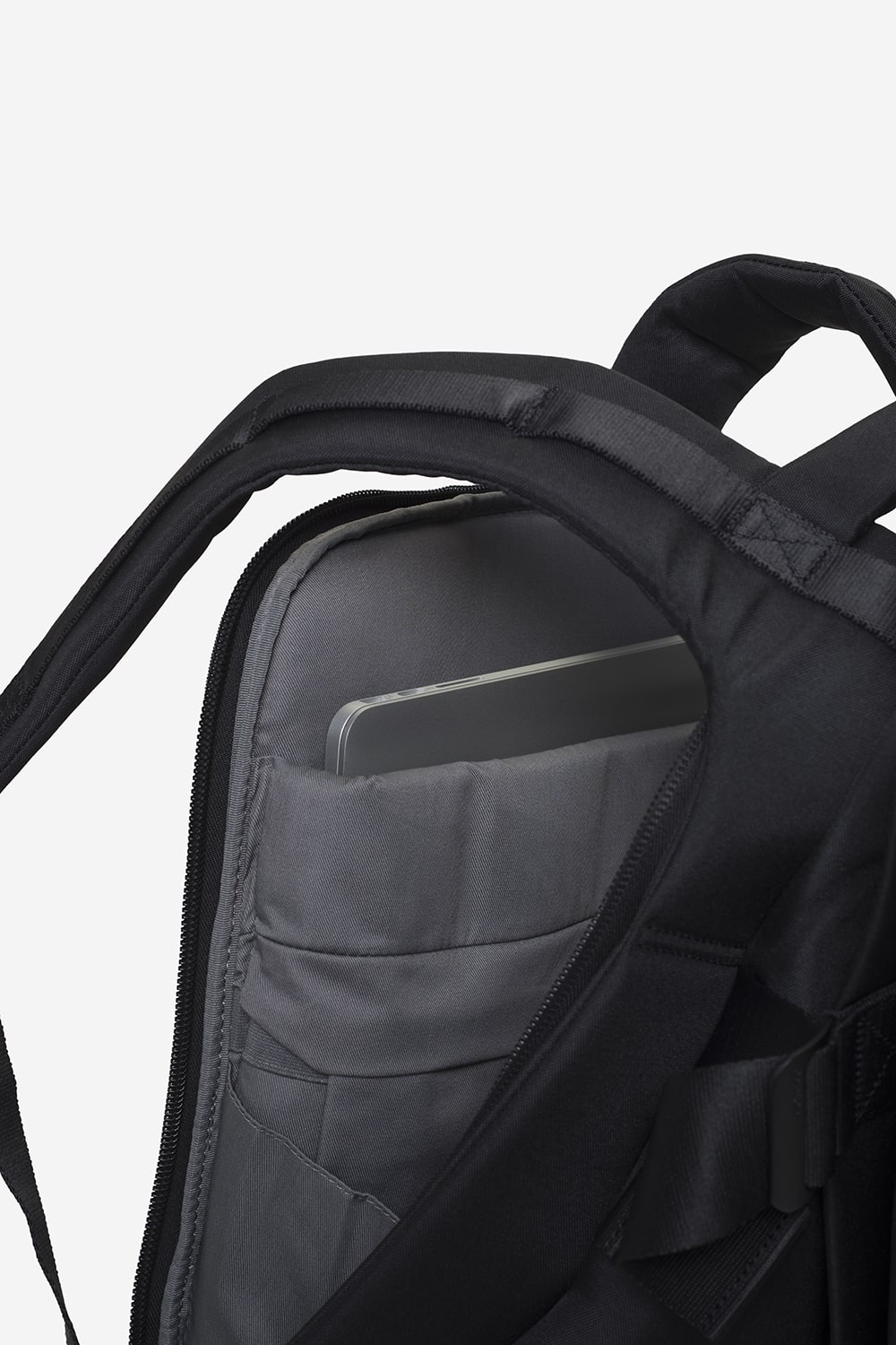 The rear compartment features a padded laptop pocket that protects devices up to 15-inch and a mesh pocket for everyday portability.