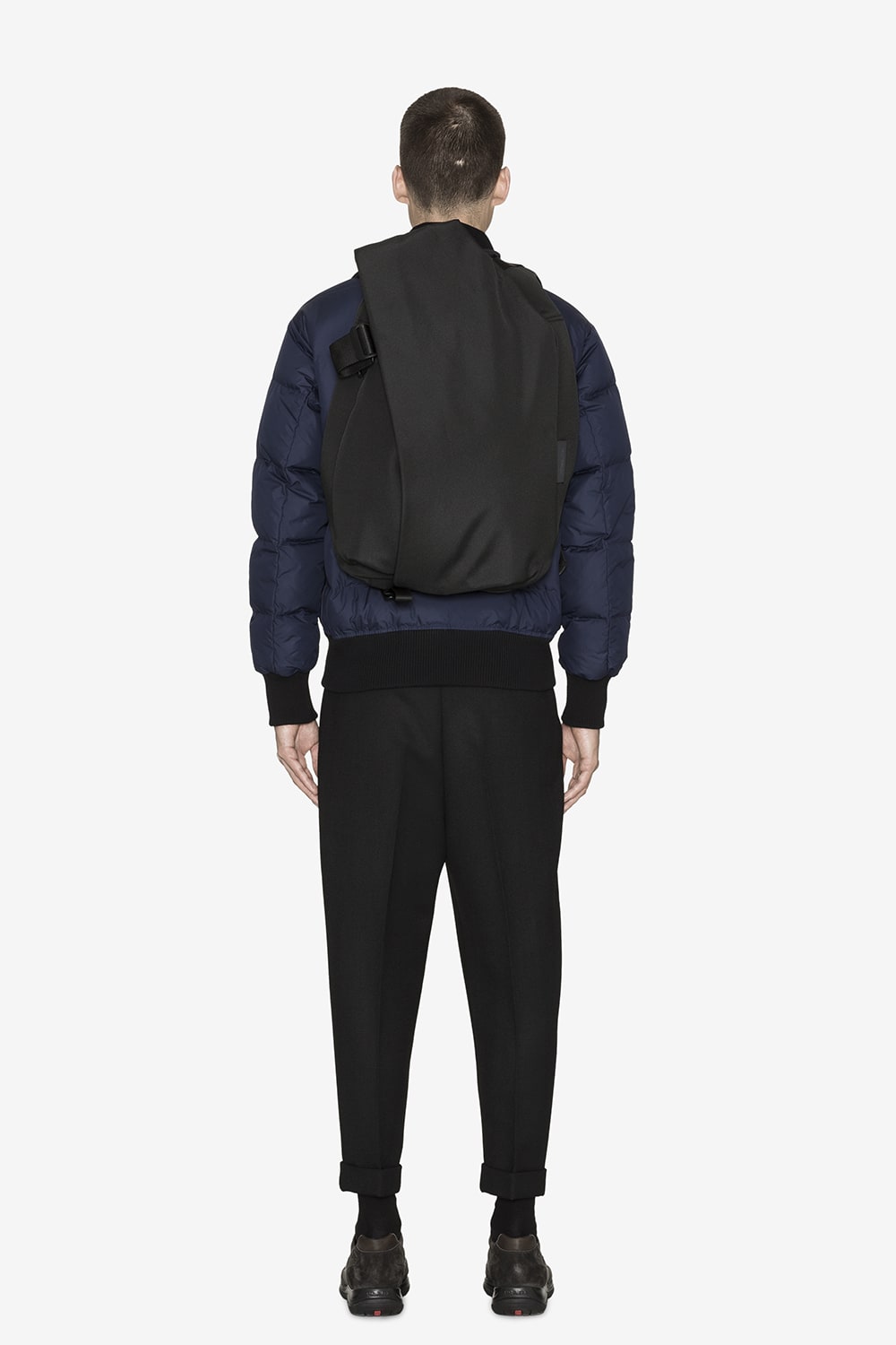 Made of weather-resistant Eco Yarn material, it has an adjustable laptop structure and strap.
