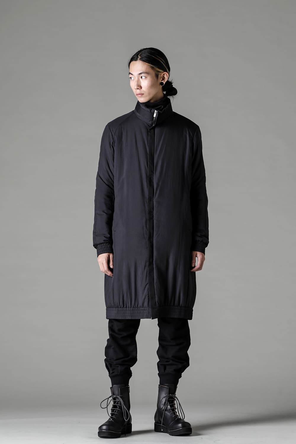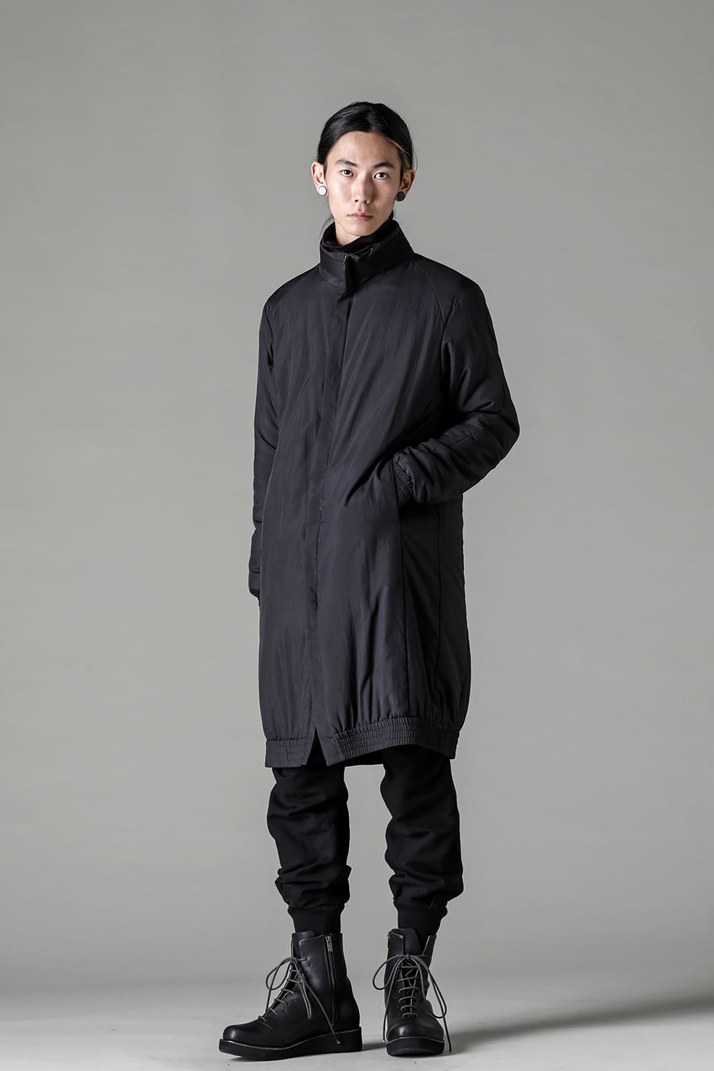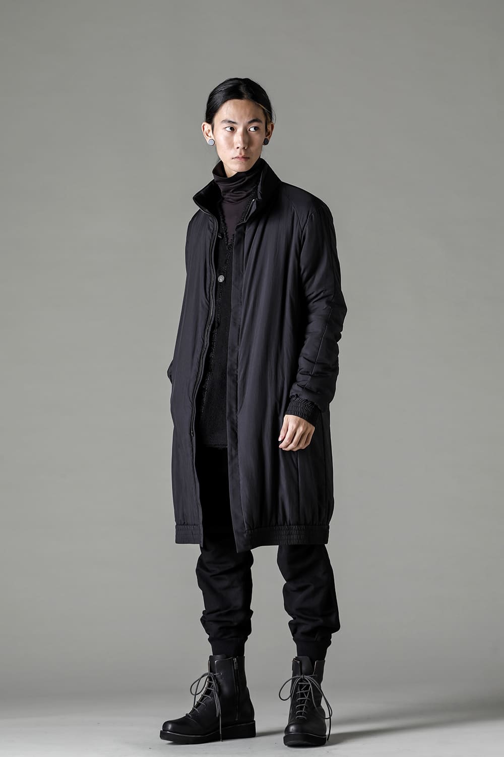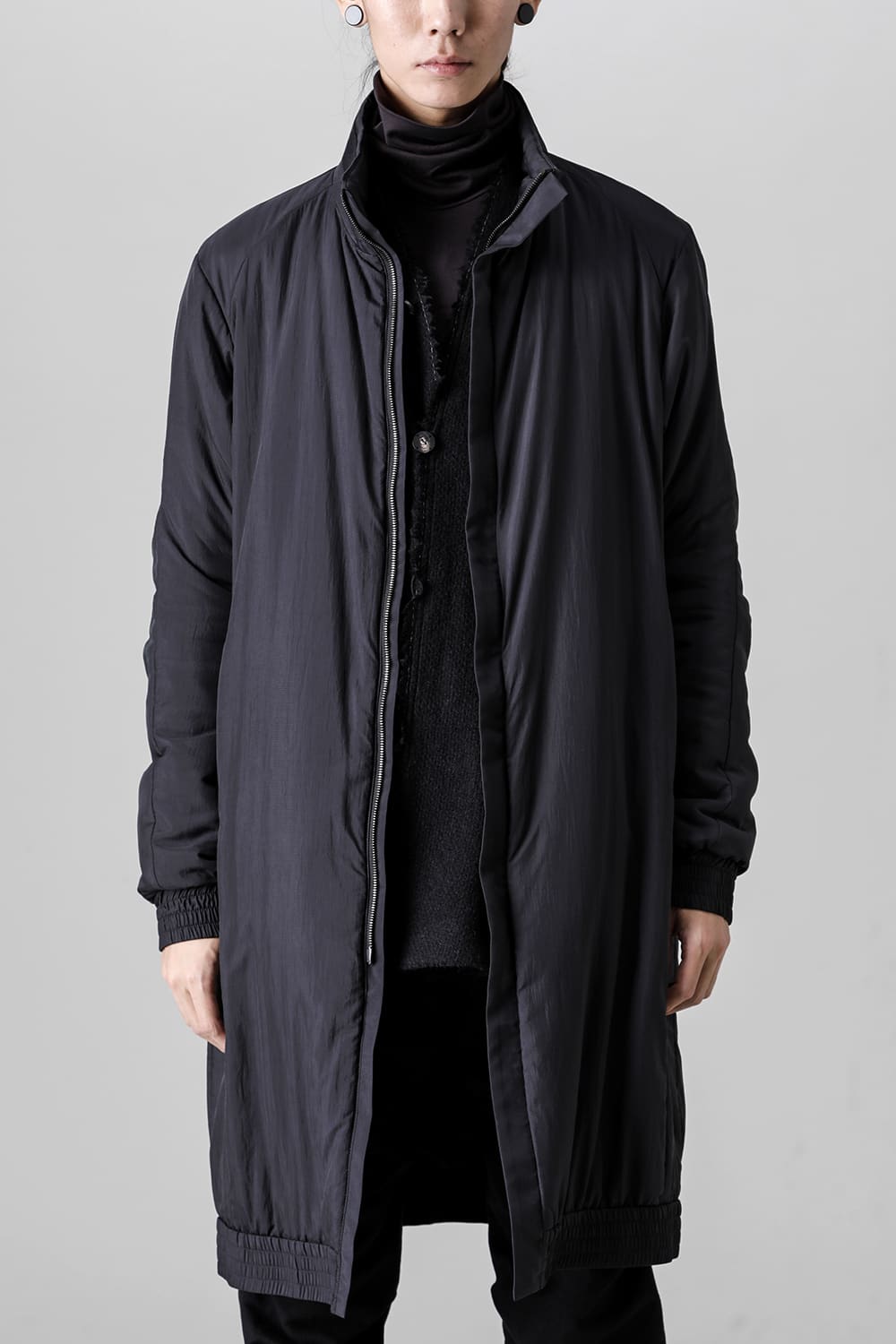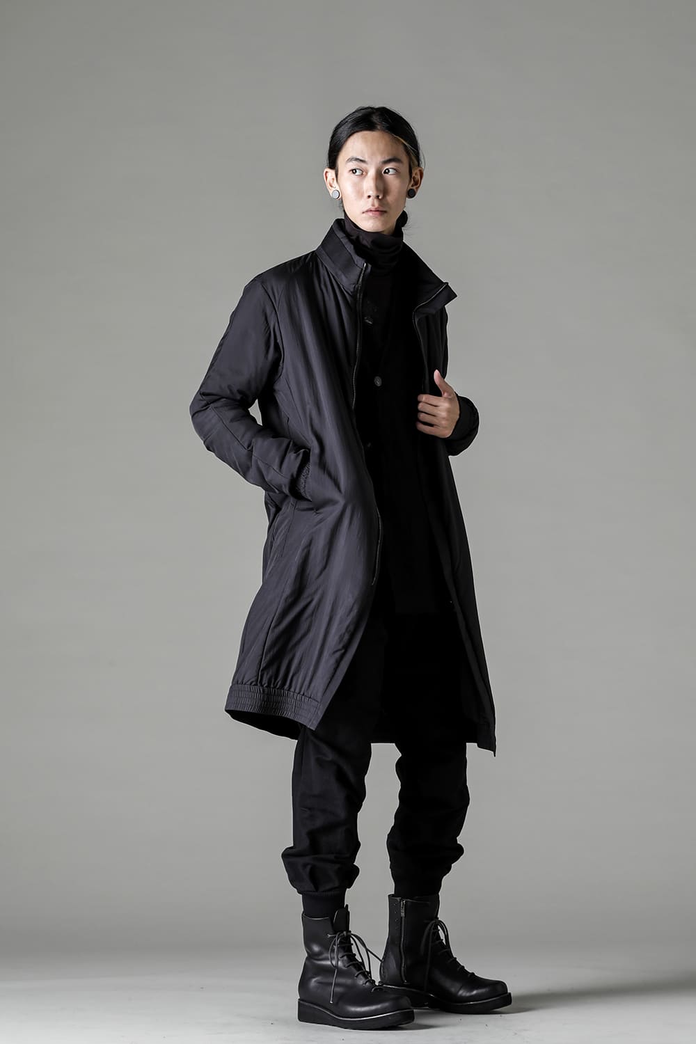 The design is high neck and zip closure, and the fly front design is minimal. The silhouette is designed to be balanced so that it can be used as an inner for outer wear, it is made to be a regular fit.