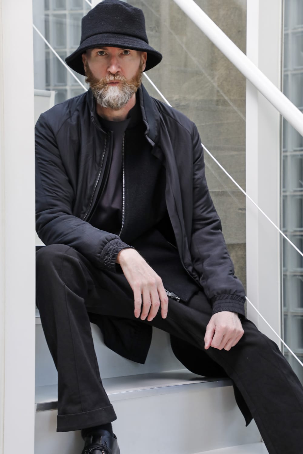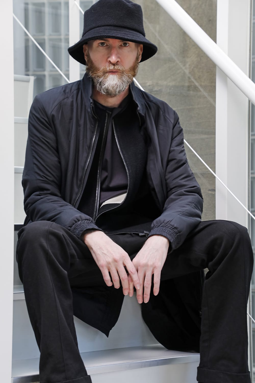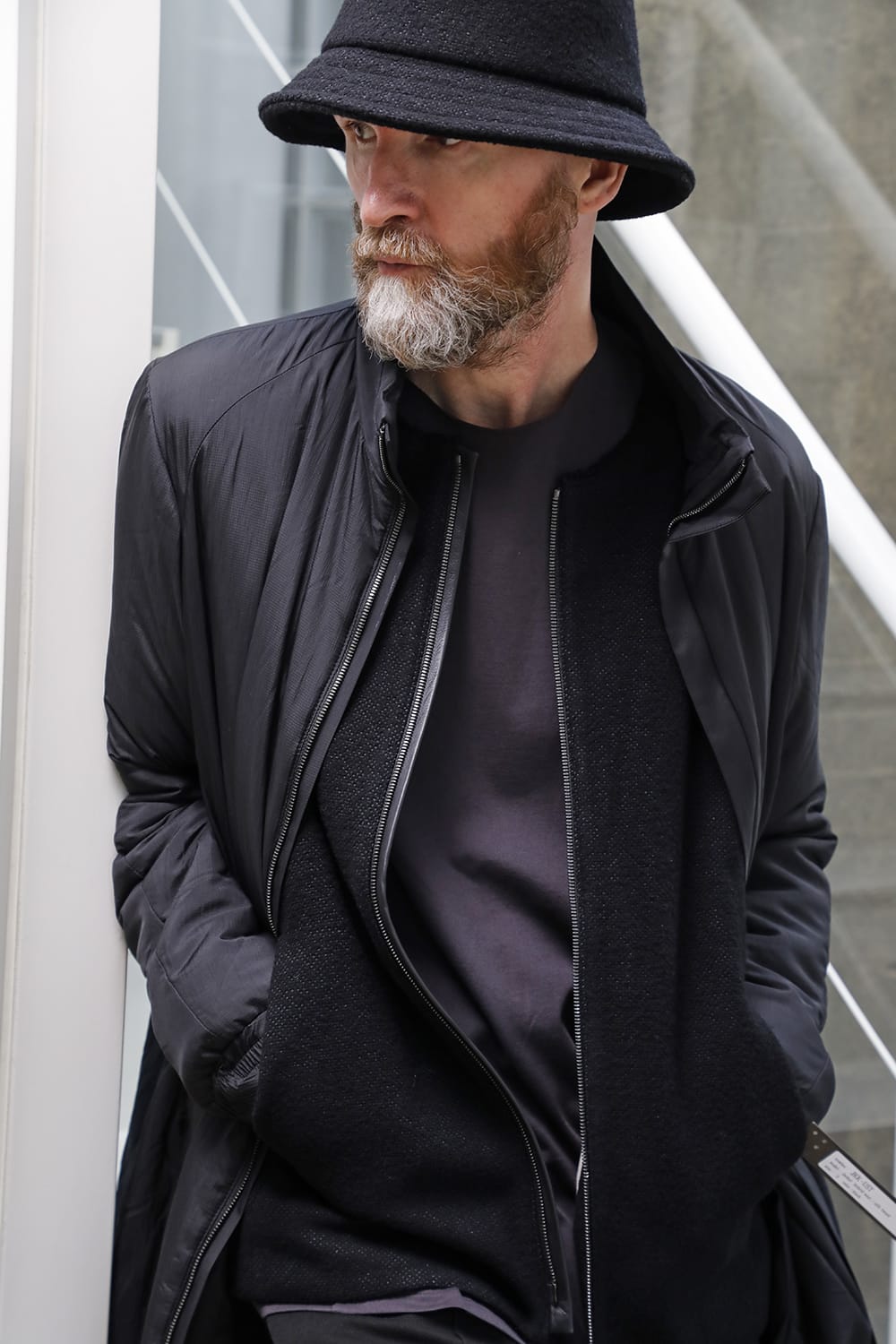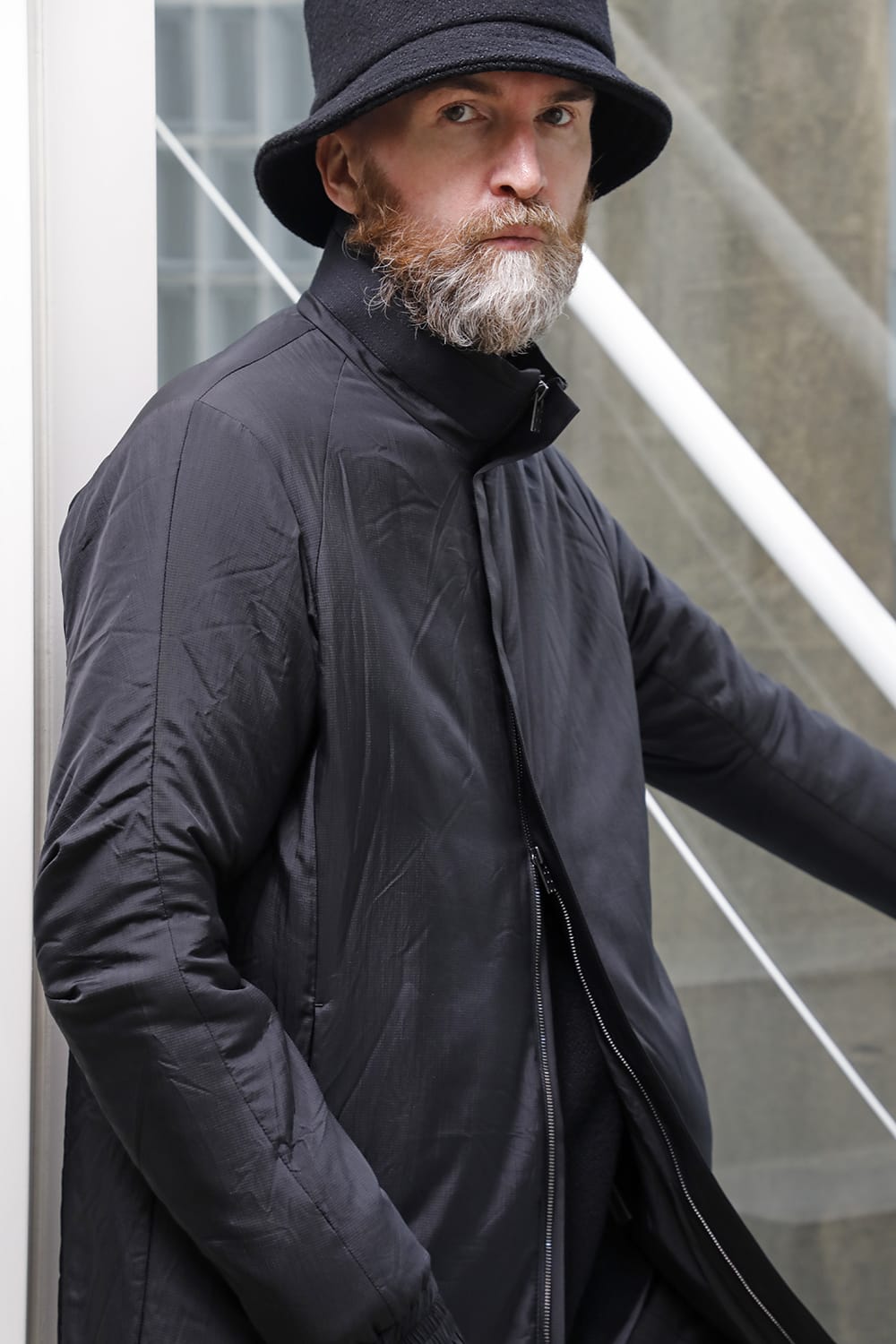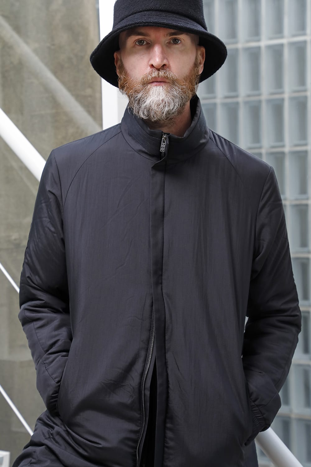 The design is high neck and zip closure, and the fly front design is minimal. The silhouette is designed to be balanced so that it can be used as an inner for outer wear, it is made to be a regular fit.