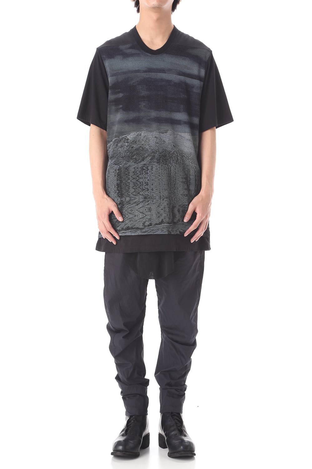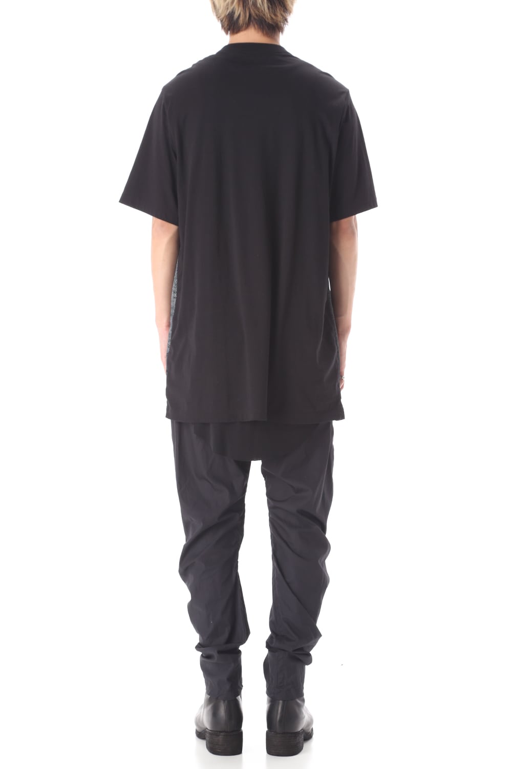 This is a pair of slim curved pants with a unique luster and a skirt with a matte texture on the waist part.