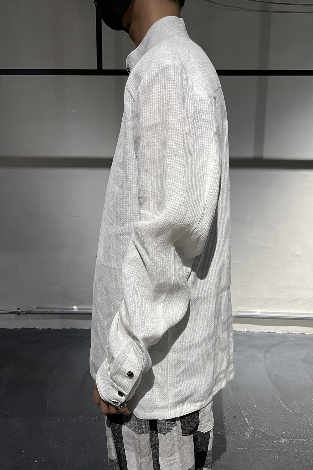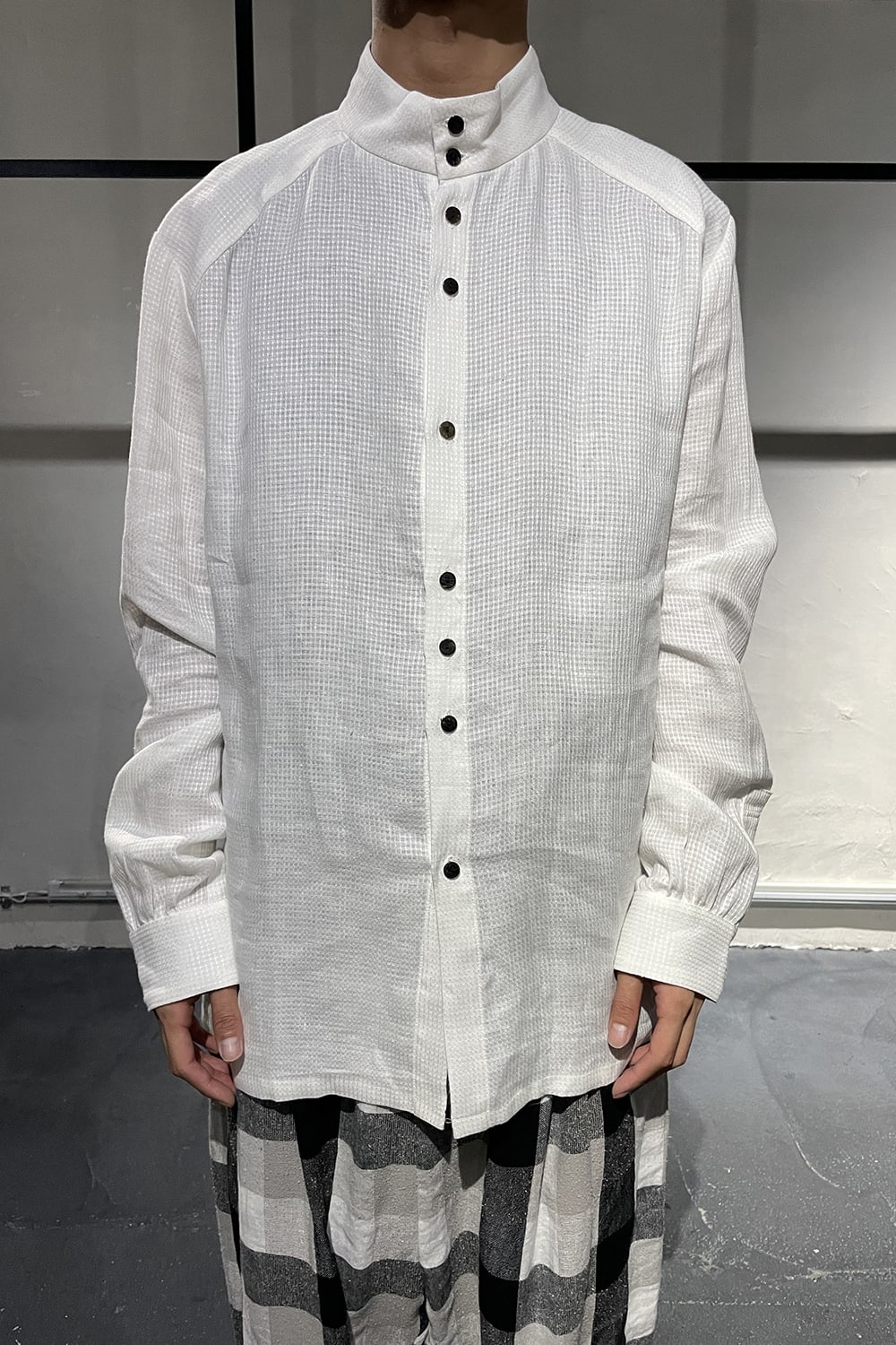 This is an item with a design that has been removed as much as possible except for the high collar and the use of two buttons. This item can be worn in any season.