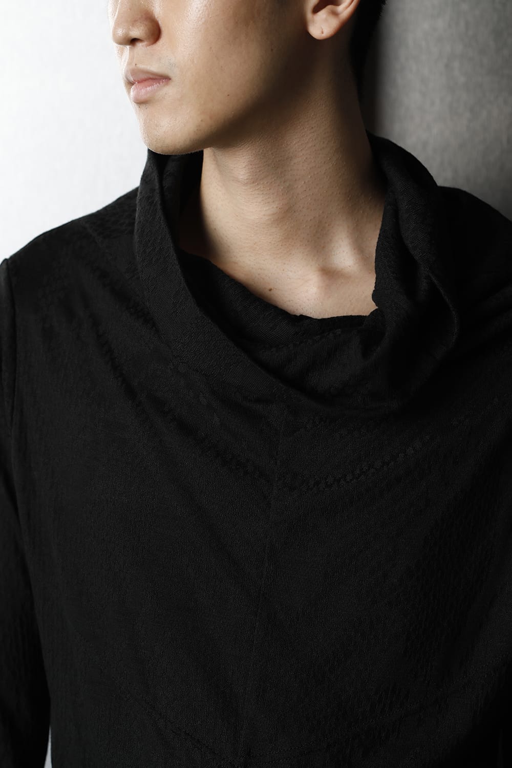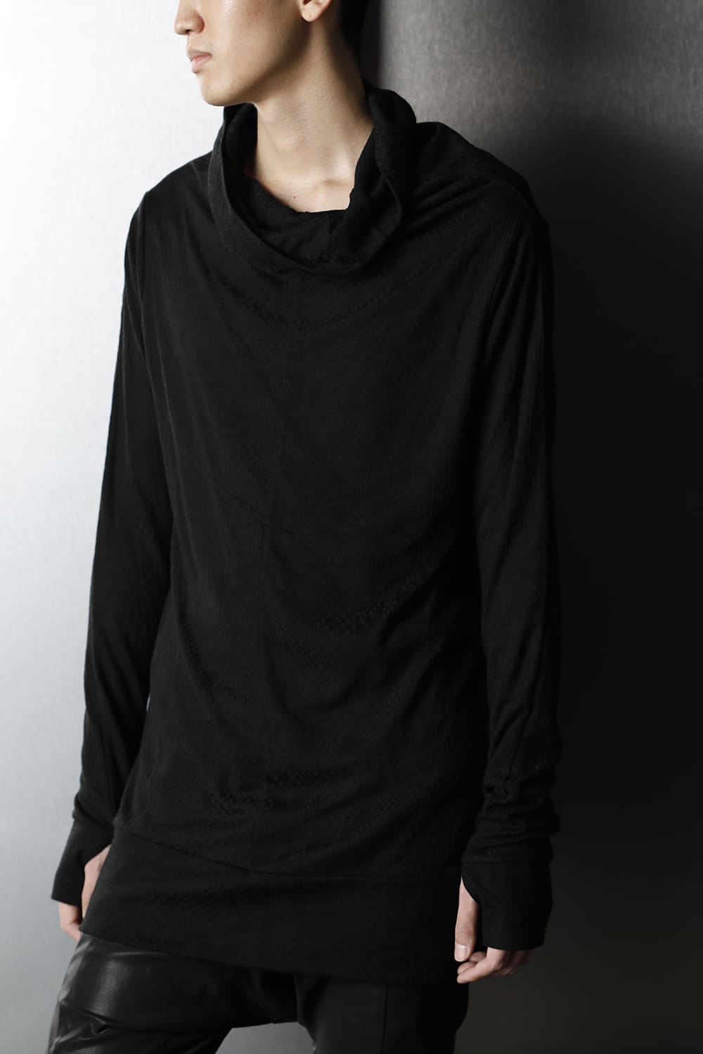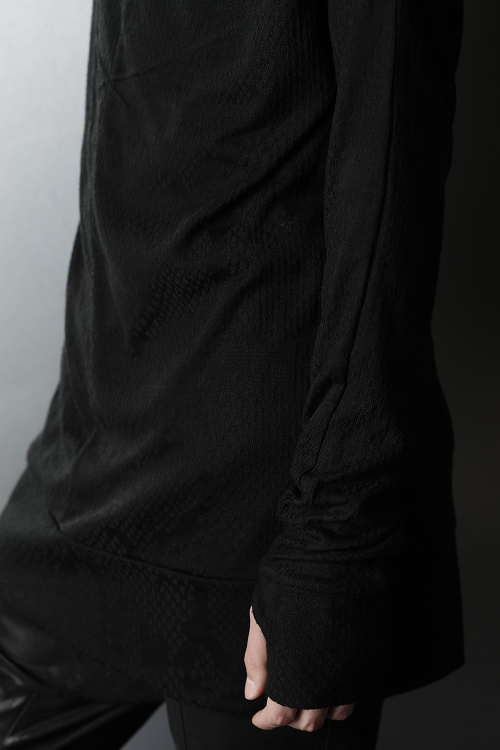 This cut sew is made of python jacquard fabric, and has a pattern with uneven material and luster.
