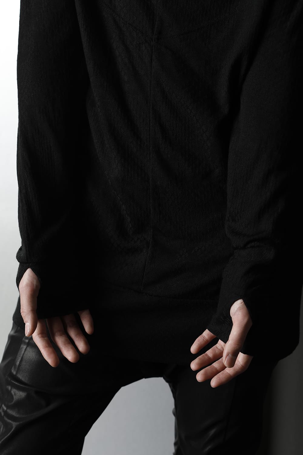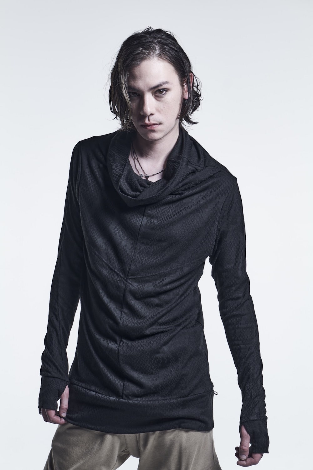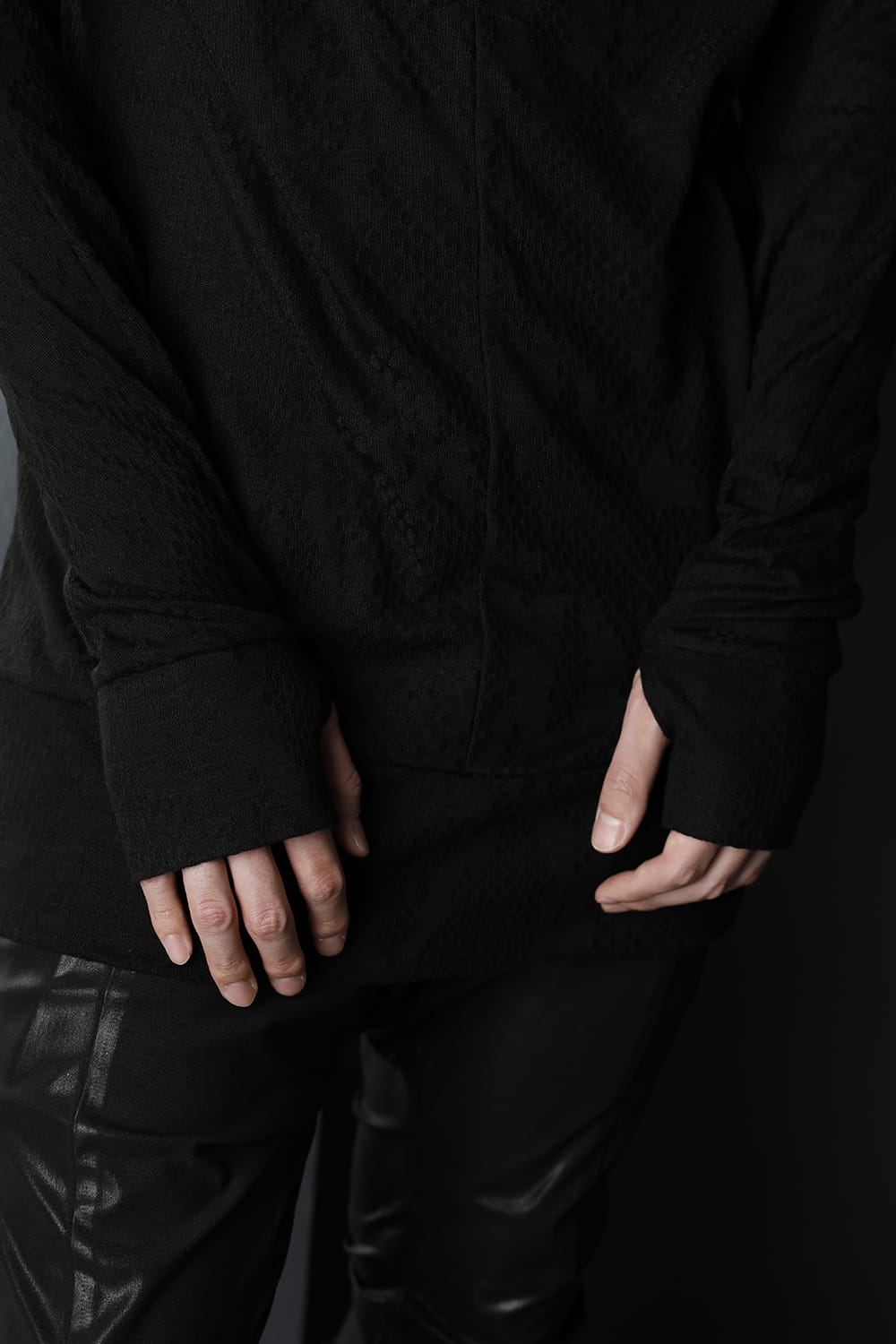 This cut sew is made of python jacquard fabric, and has a pattern with uneven material and luster.