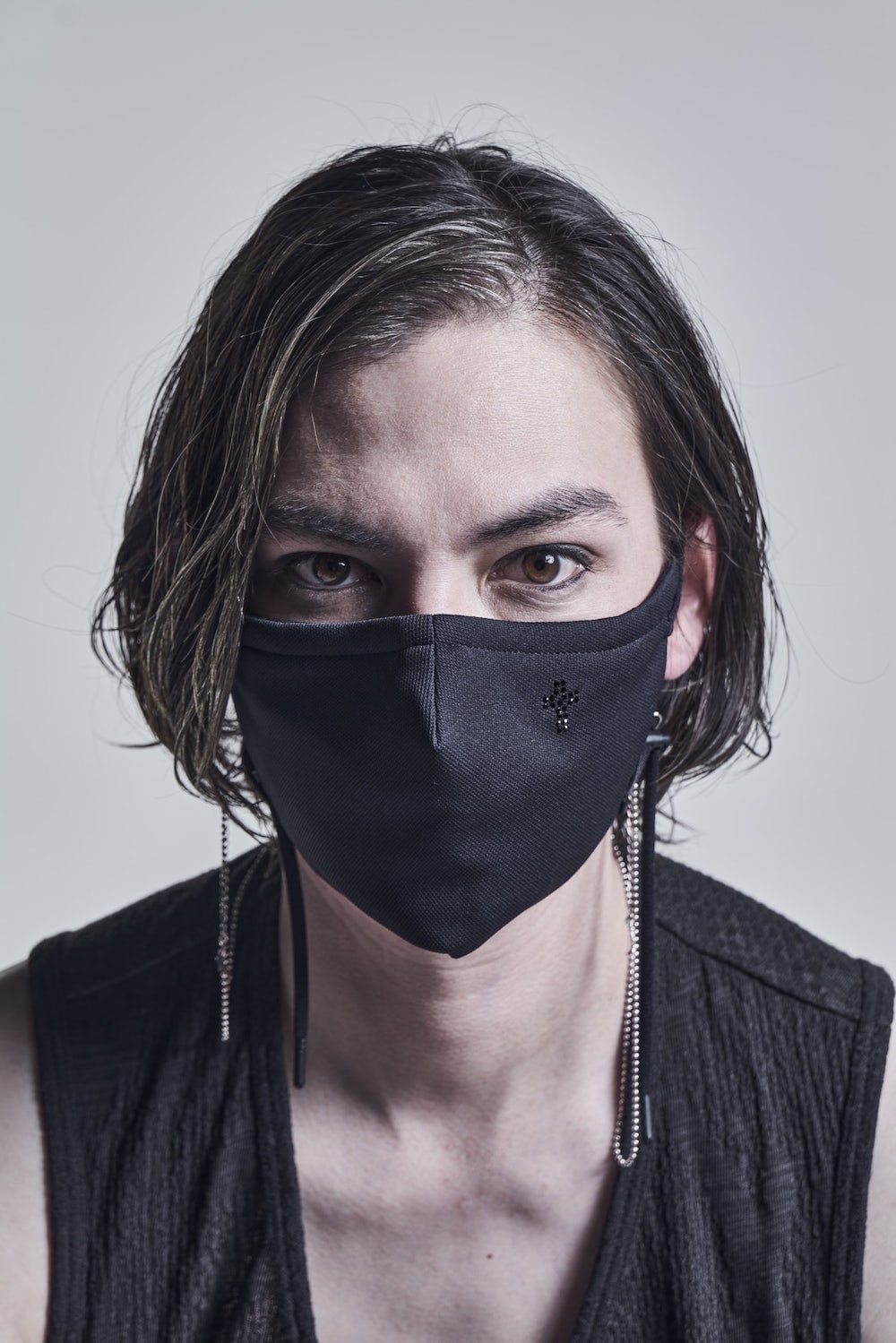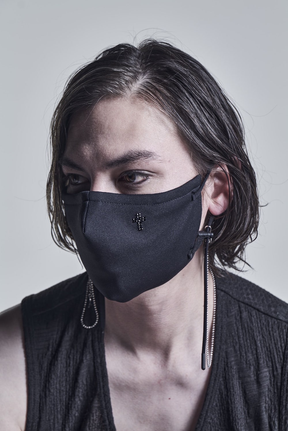 This face cover mask is made of a heavy mesh fabric that has a firm texture and good ventilation.