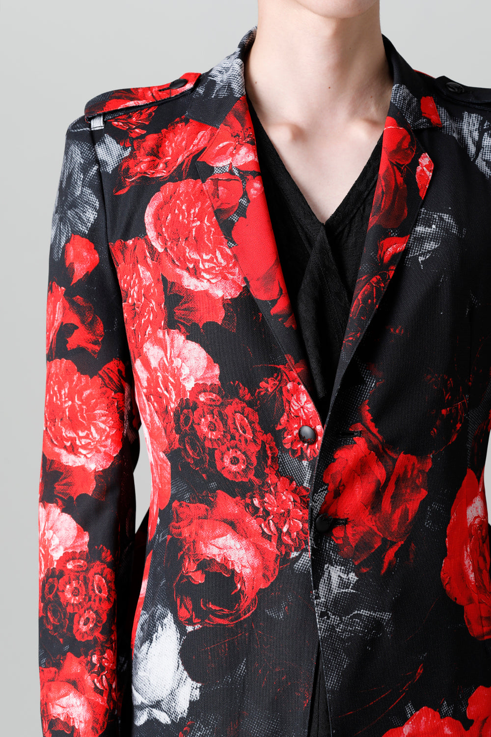 This is the brand's speciality tailored jacket with a flower print on the mesh fabric.