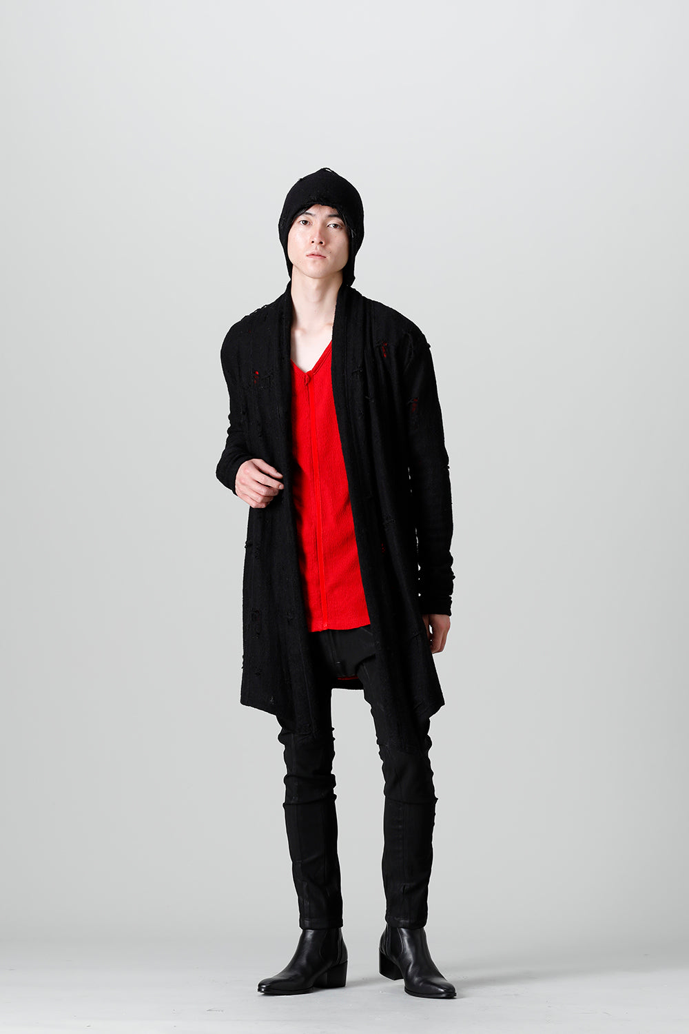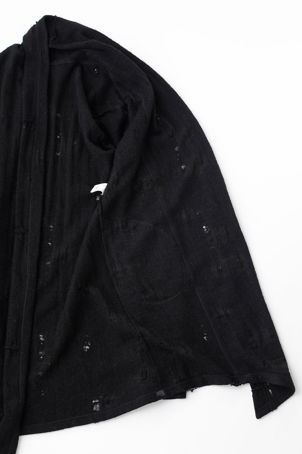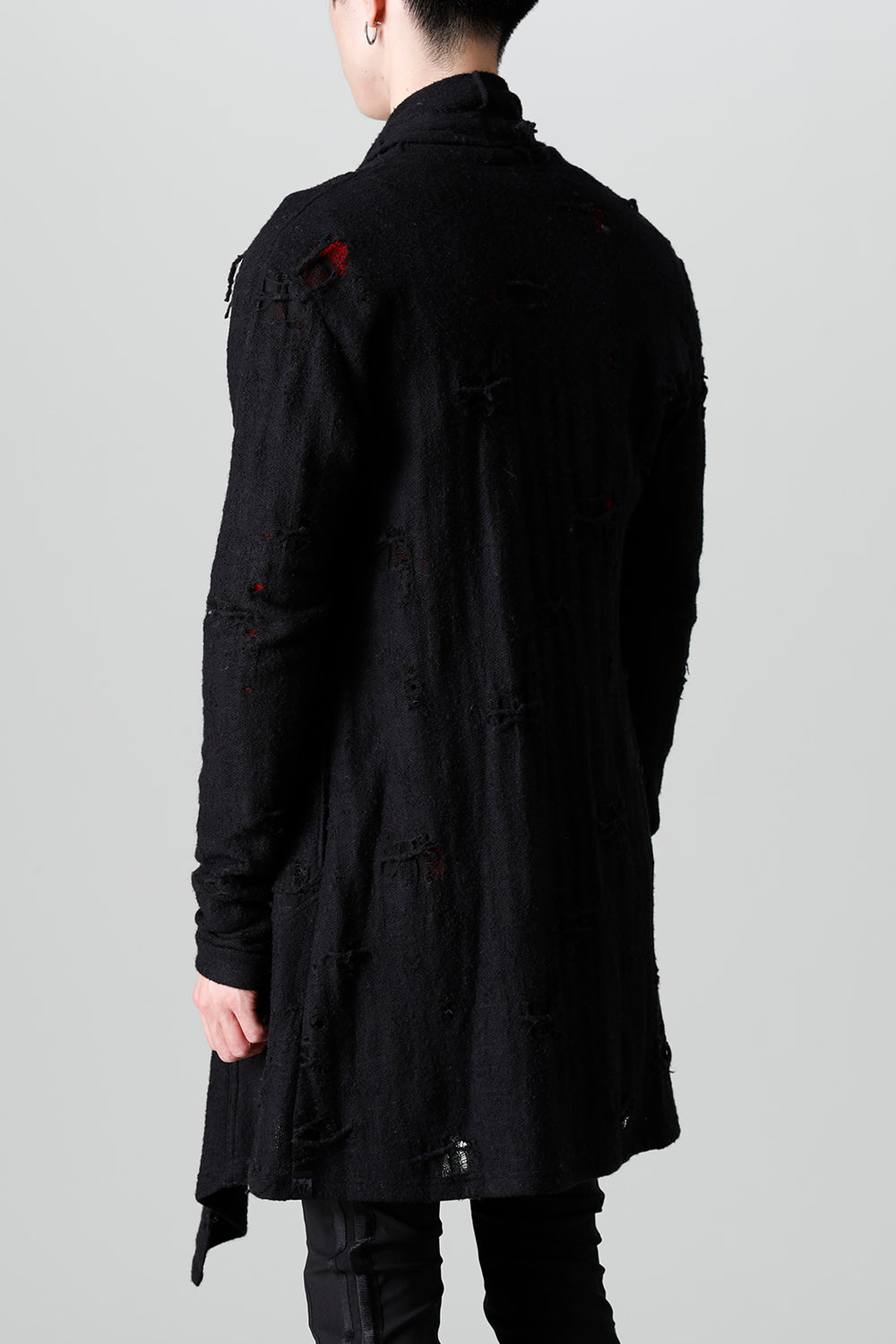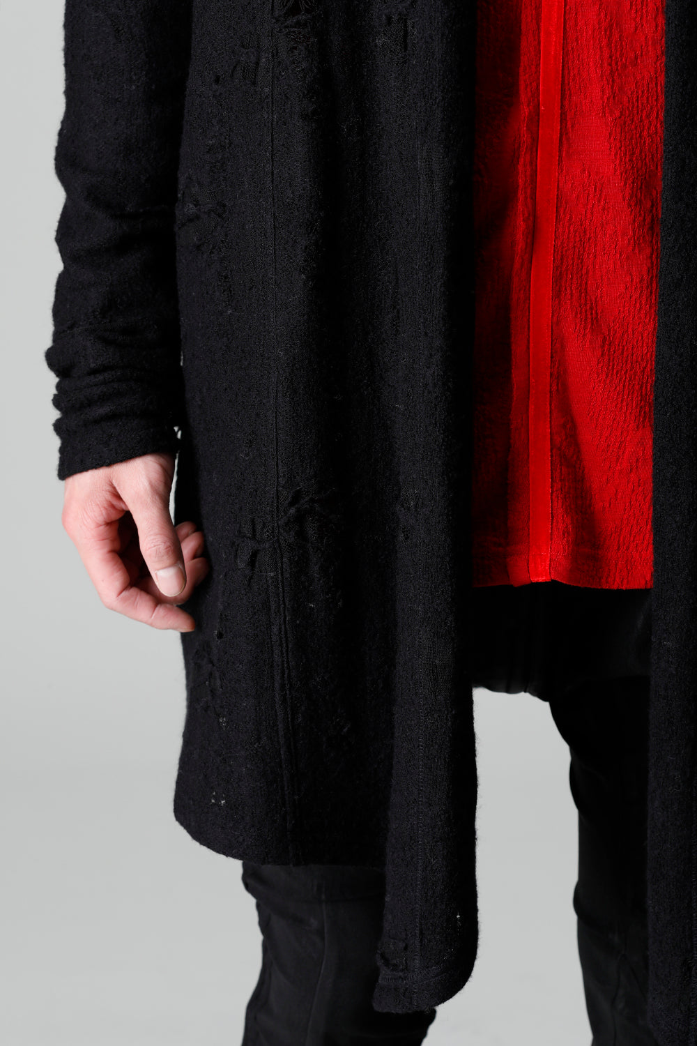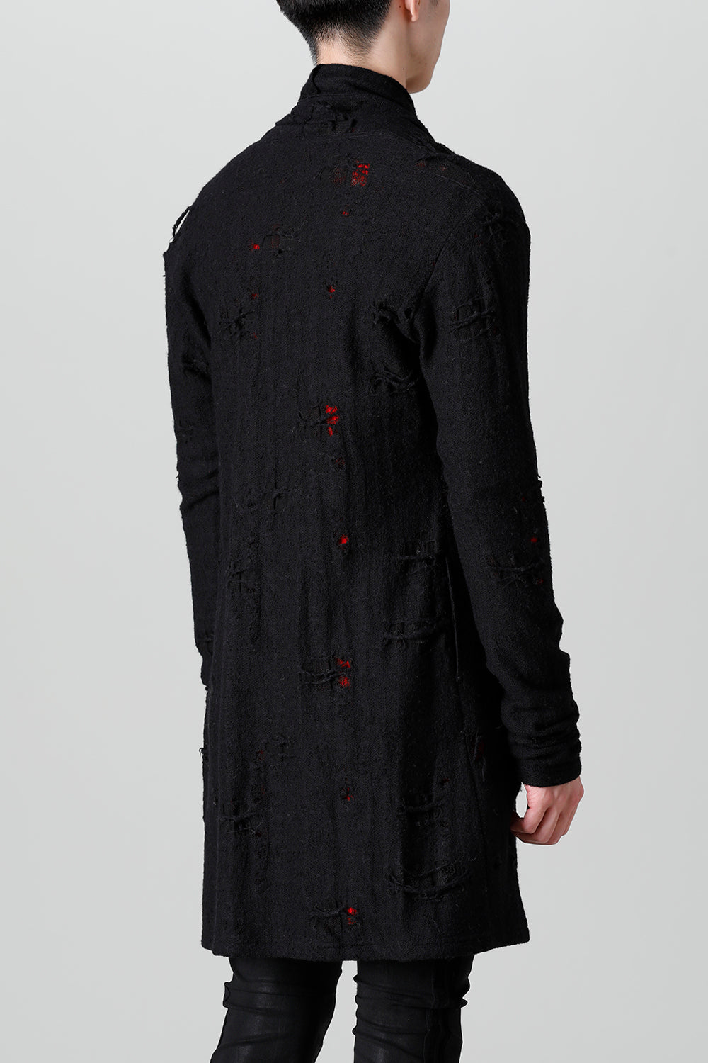 This shawl cardigan is the brand's standard shawl cardigan made of jacquard jersey fabric with damage processing everywhere.
