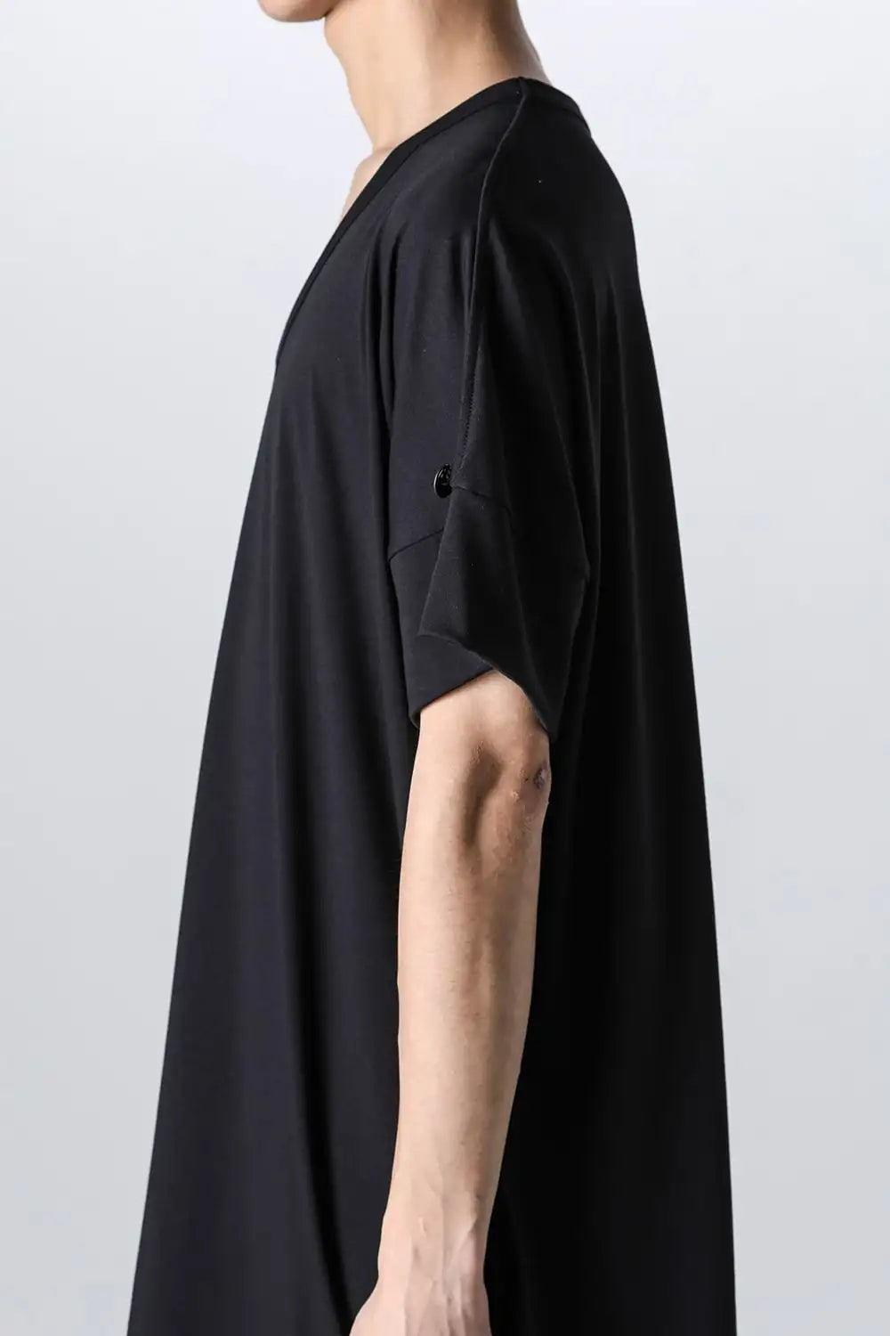 V-neck T-shirt made from soft-touch, highly stretchable, and drapey Bear jersey fabric.