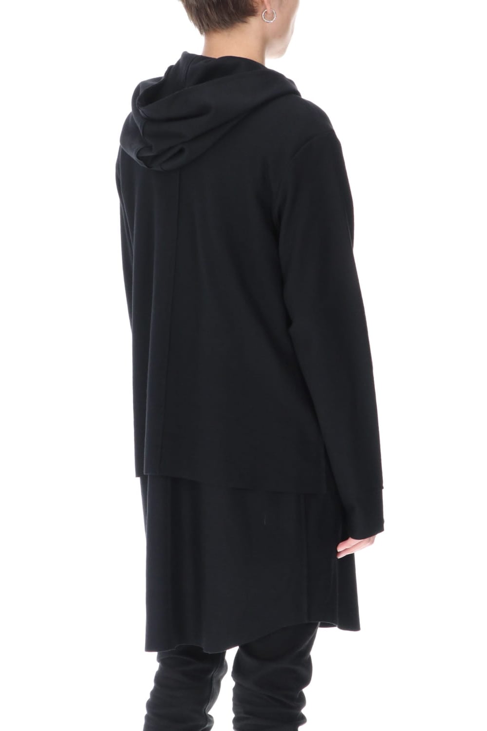 A coat type layered hoodie made of 20ss cut sew fabric.