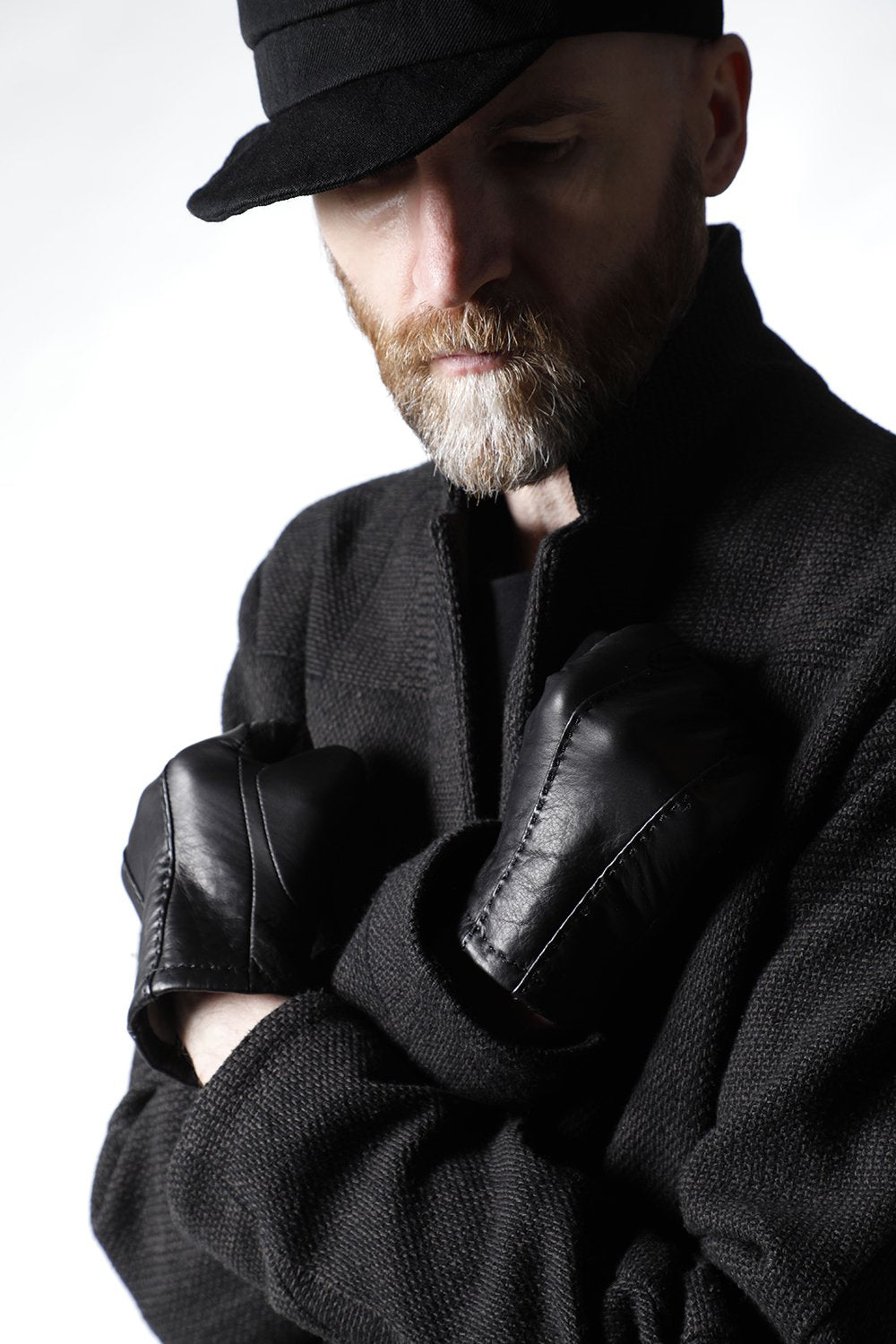 It is made of the same leather in two different sizes, a fingerless type and a regular type.
