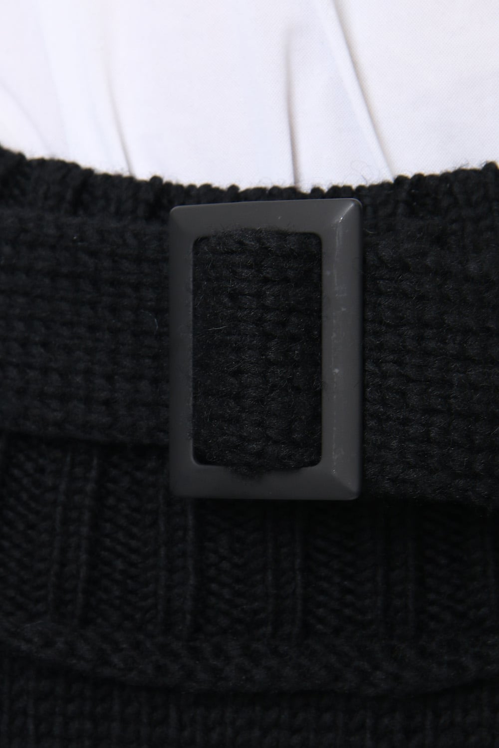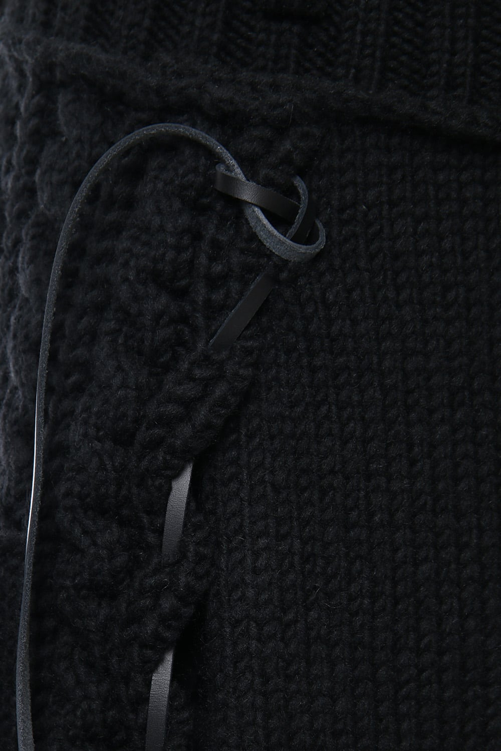 Raw gauge knit skirt featuring knitting of leather worn during the runway LOOK 22.