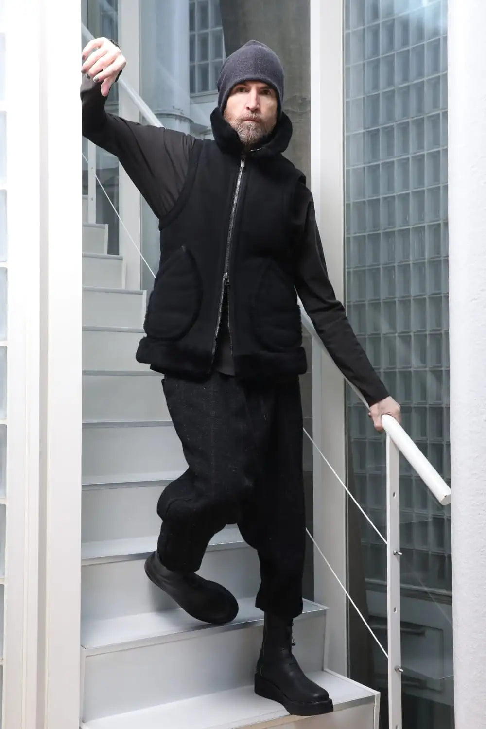 High neck Vest Sheep Skin Black