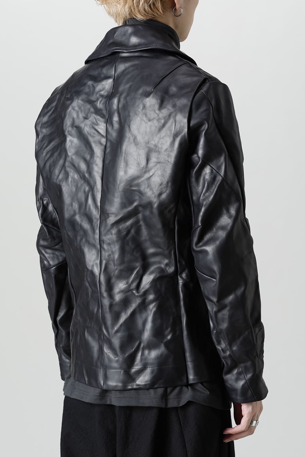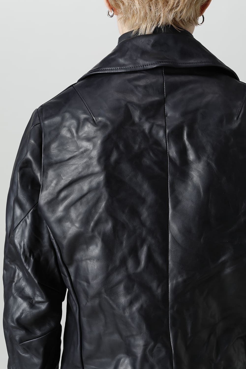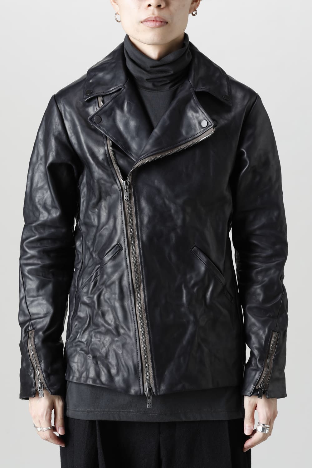This is a double rider's jacket made of 1.2 mm thick calf leather from GUIDI in Italy.