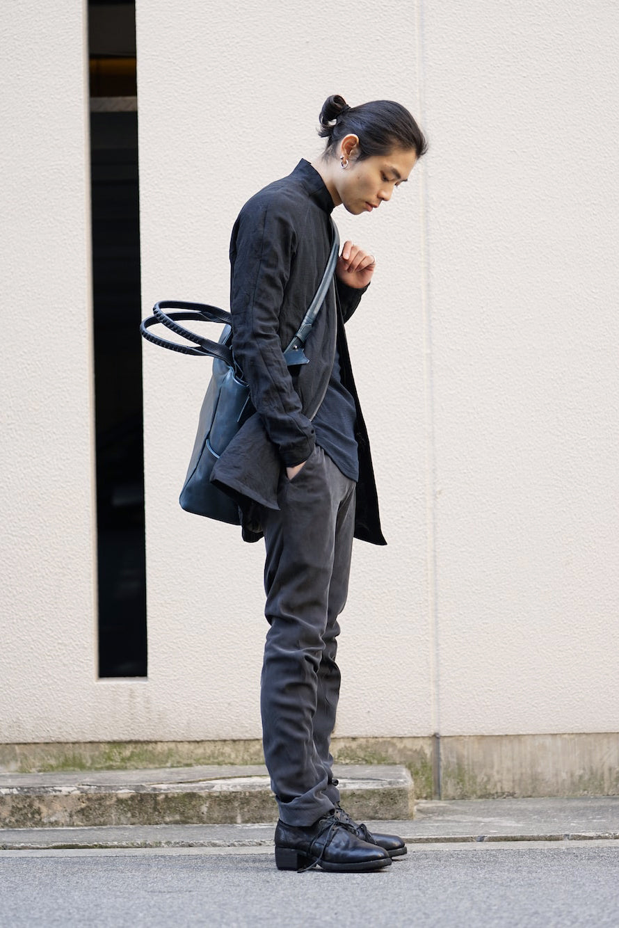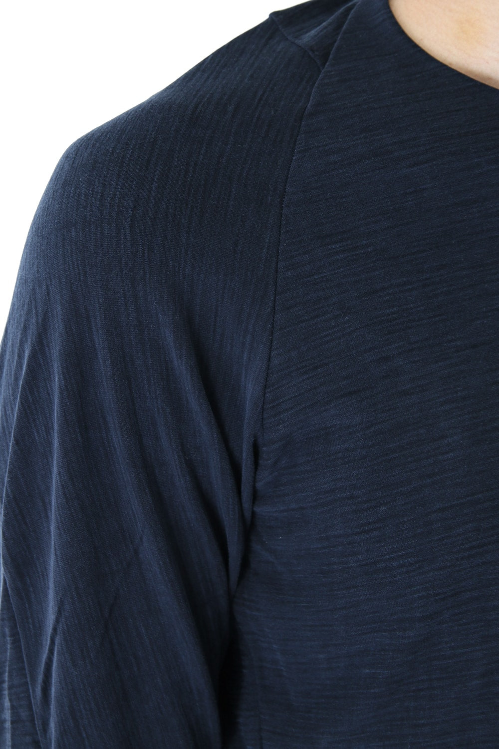 Made with a special glossiness 100% cupra fabric that had a vintage finishing, showing a unique color impression when used on the reverse side. The pattern is a long sleeve raglan base regular fit, and regular length.