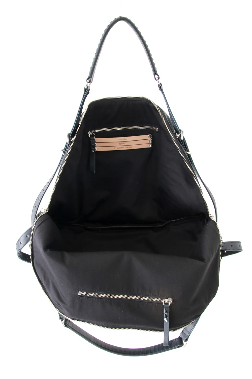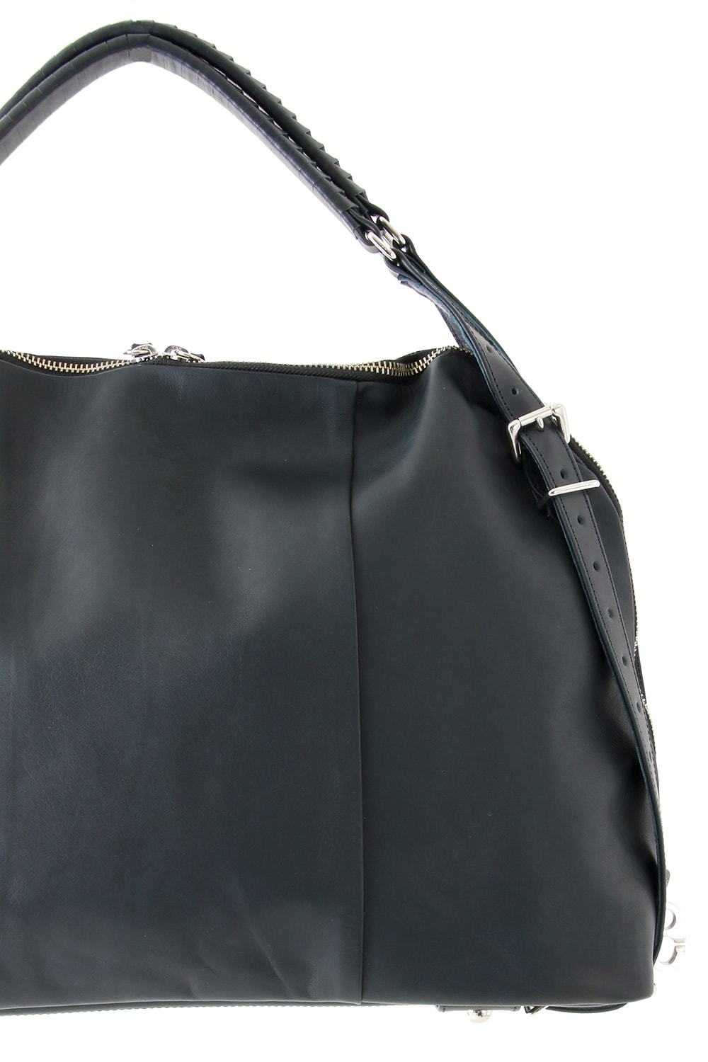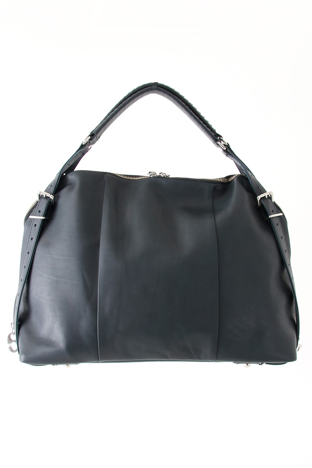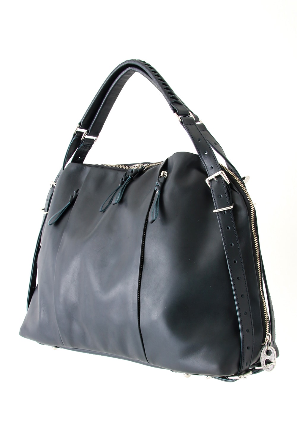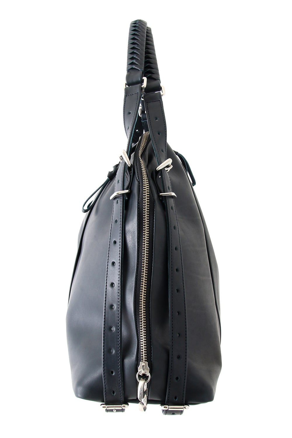 This bag is made with a beautiful soft touch kip leather that had a sumi dying and has a matte impression. The handle passes through from the bottom of the bag and its length can be adjusted, so you can modify it to hold this bag many different ways. The body has 4 sliders on its zip. 2 of these sliders have a ship chandlery inspired part, these are original parts that can also be used to connect to other cornelian taurus items such as a coin case or a key holder for example.