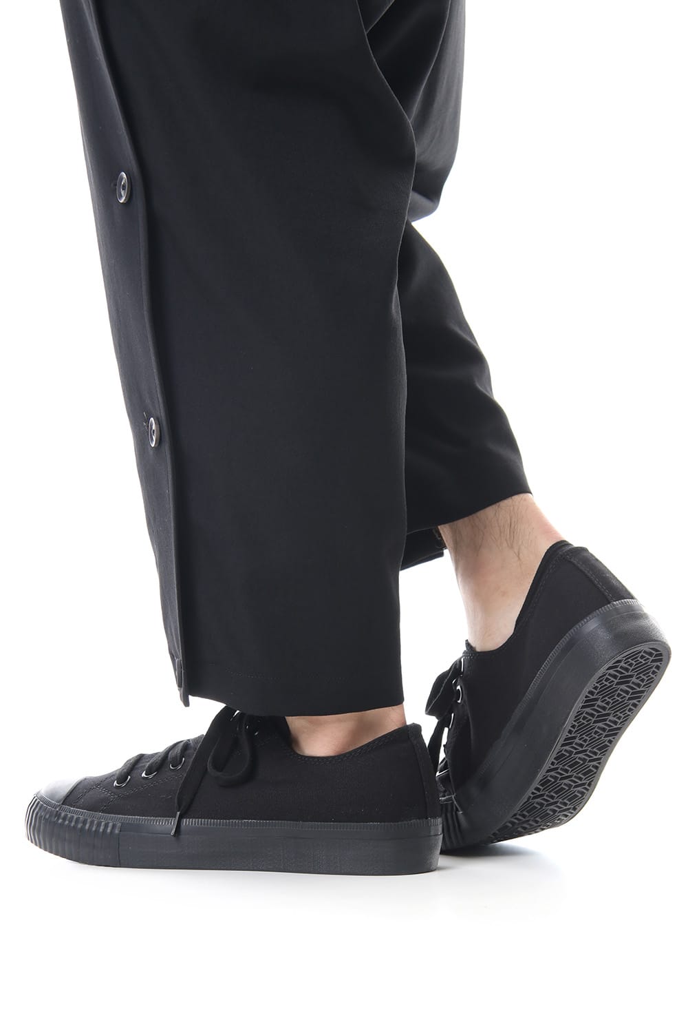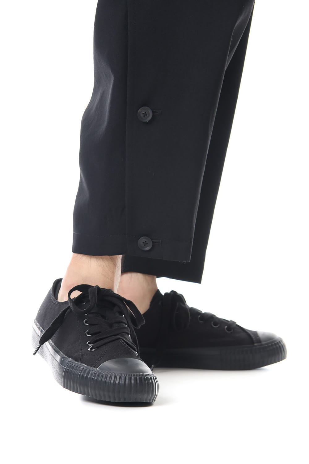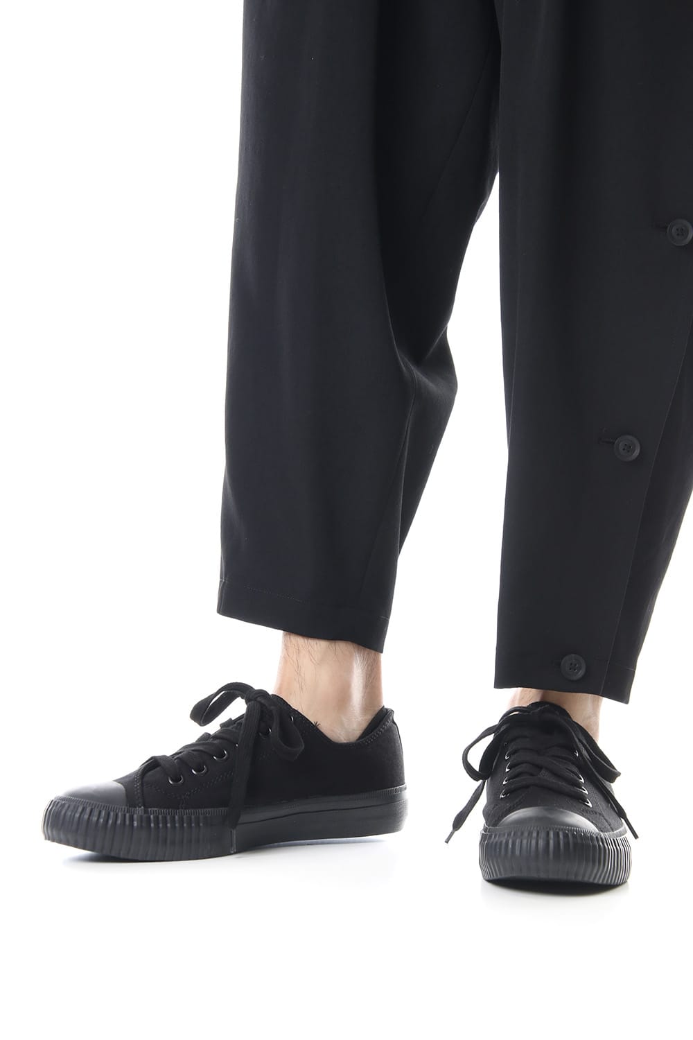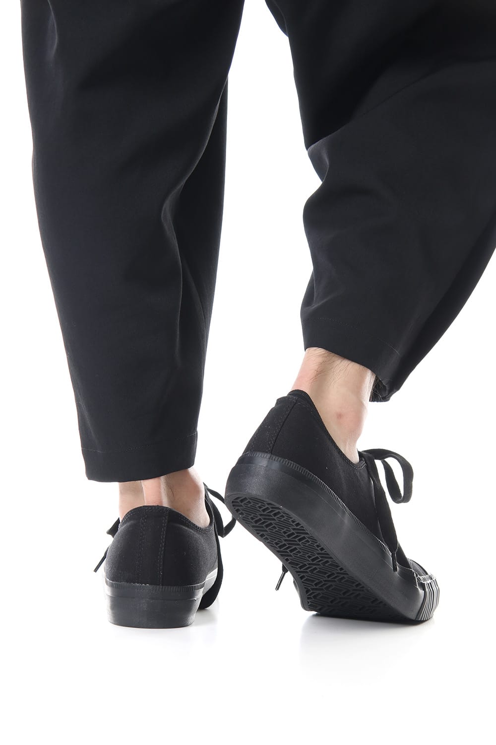 Low-cut canvas sneakers worn during the Runway in LOOK 16 and 23. It has a casual design with the upper part folded on the left and right like the front of a kimono, the toe cap gives an accent and it has a classic yet twisted design. The modest design makes it versatile enough to match a wide range of styles.