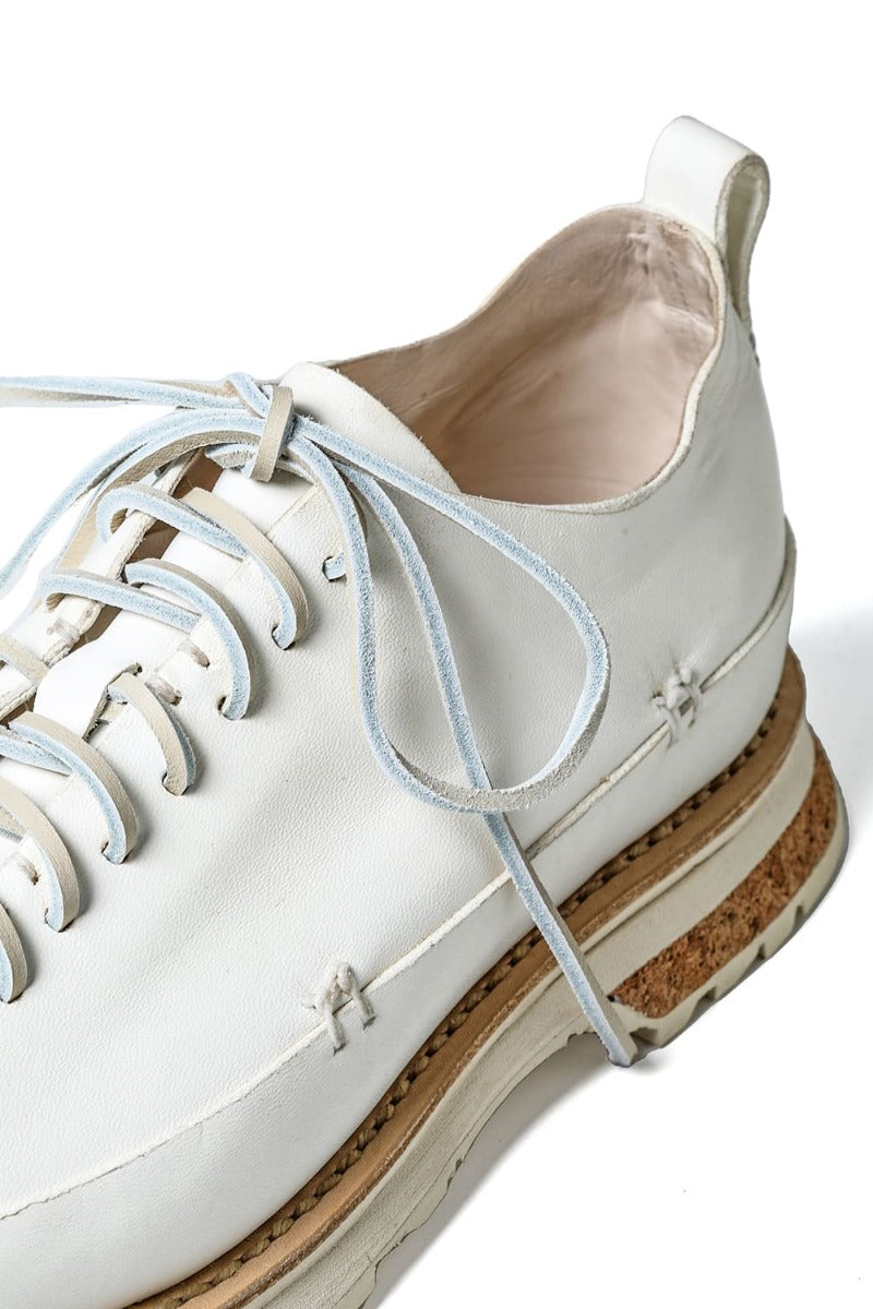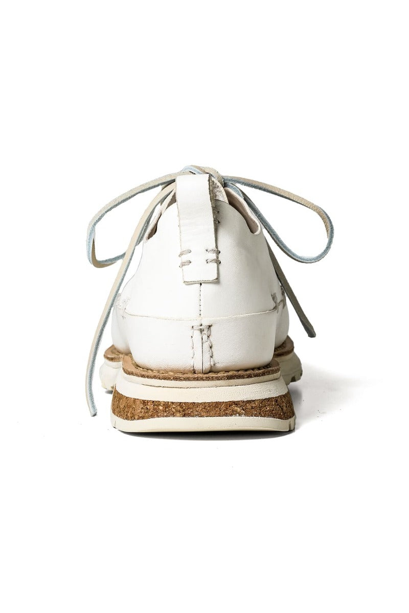 A beautiful white upper design with a solid leather color and a coloured combination of cork tucked in the heel of the sole.