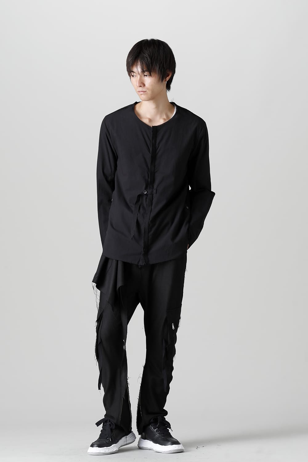 This collarless shirt is popular as a category in ASKYY. This season, the "Napoleon element" which gives a noble impression by the continuous buttons is fused.