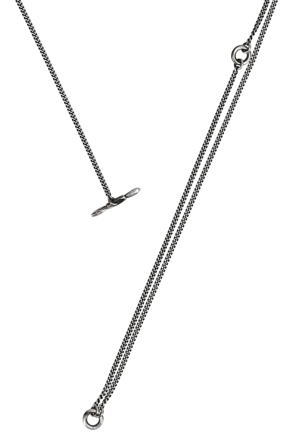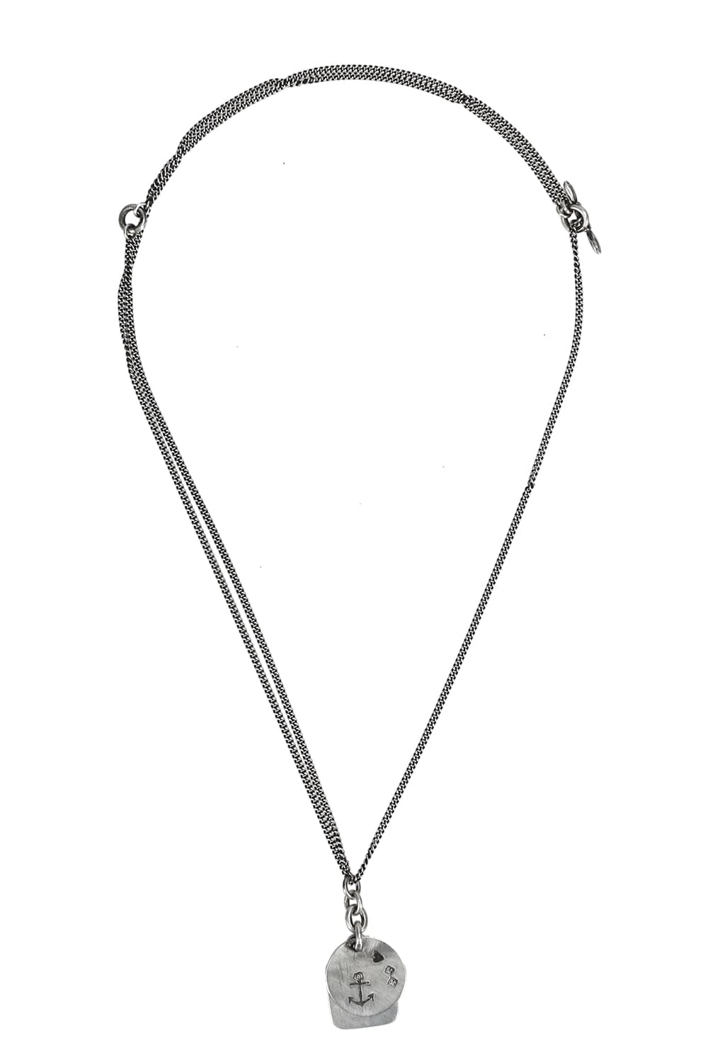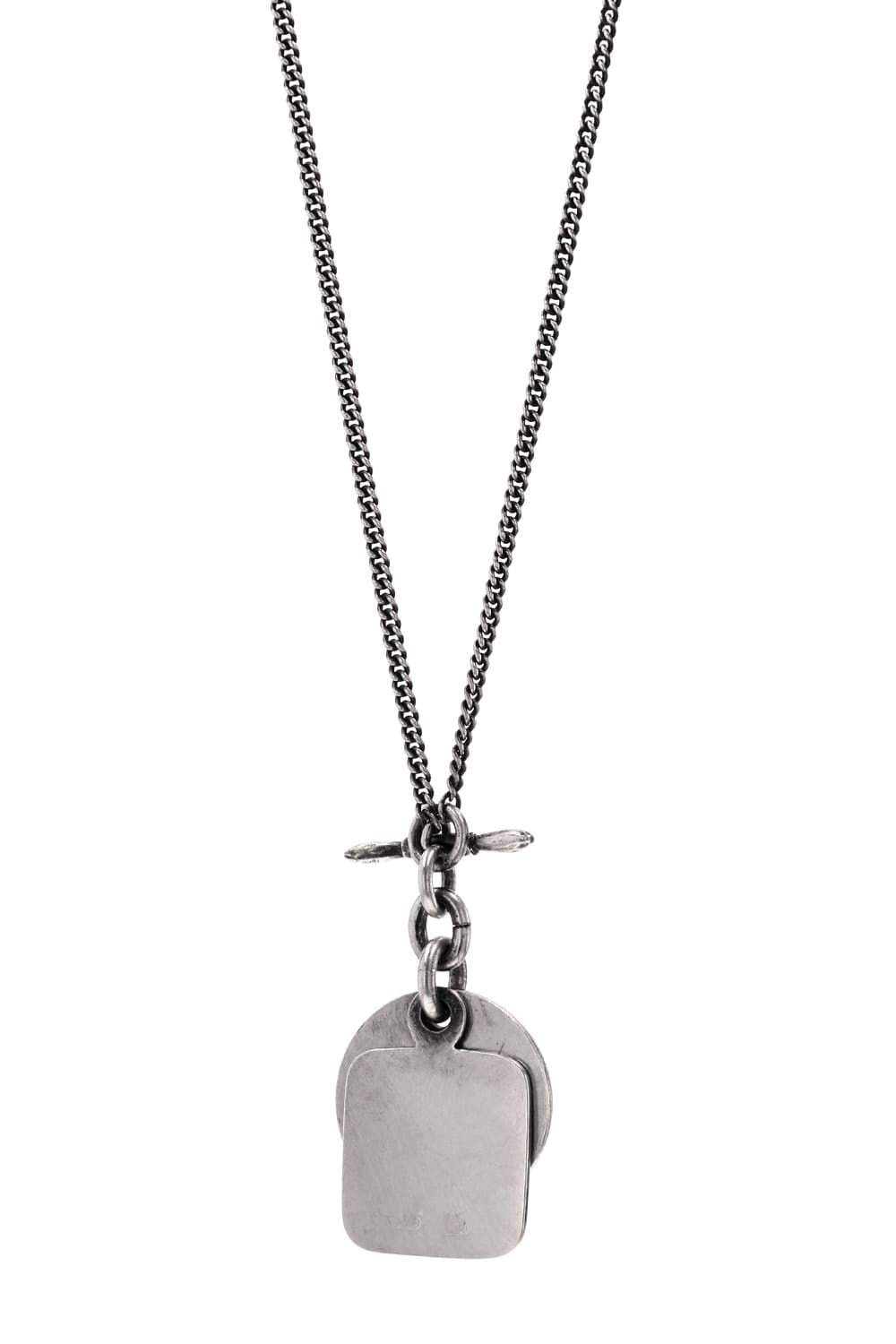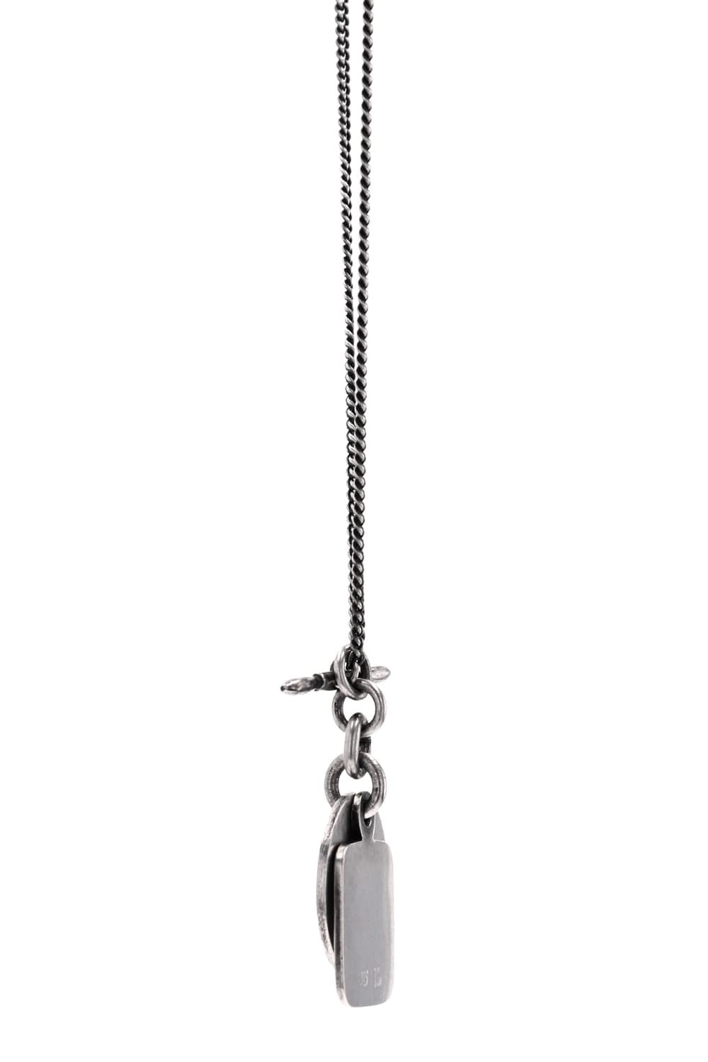 A charm design combining square and round tags. The engraving of the cross, heart and anchor of the round tag is a medieval symbol signifying faith, love and hope that has been engraved on the treasured works of Werkstatt:München for many years. The length of this moderately slim chain can be adjusted in 3 levels depending on the position of the toggle, and you can enjoy a layered look.