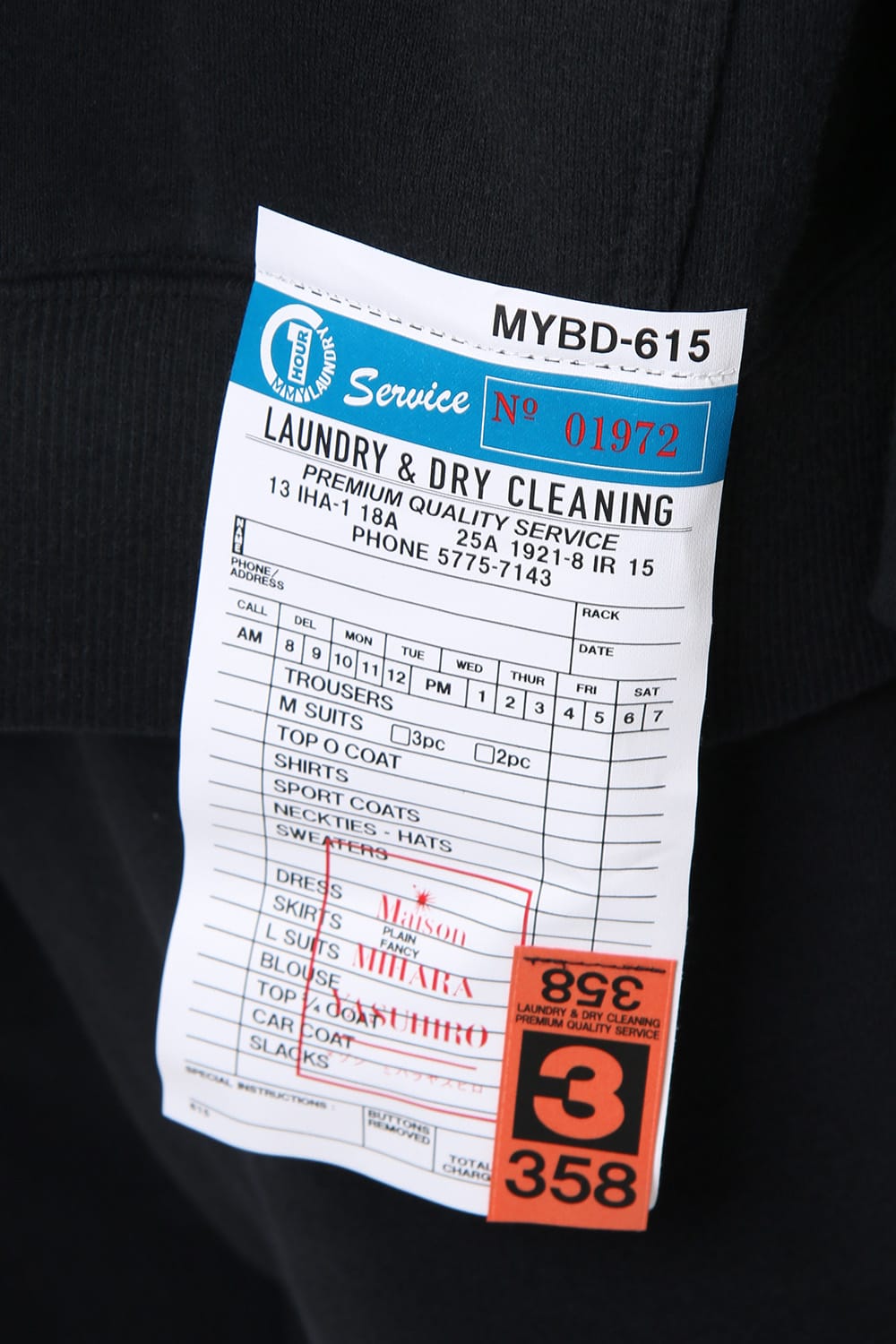 ・架空のクリーニング店をイメージして取付けられた明細タグや"358"のビスタグなど、遊び心溢れるデザインとなっている