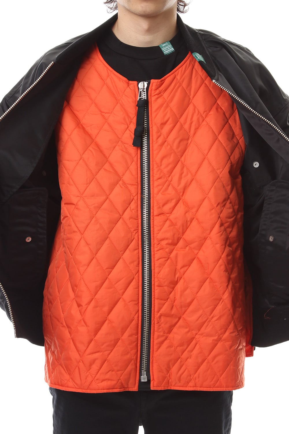 The outer fabric uses a strong nylon twill to express the expression of MA-01 and the orange quilted lining is layered to create a mysterious impression that the outer and lining are separated.