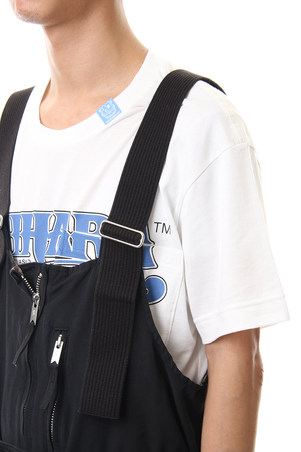 ベルトをしめ肩ひもを垂らせばパンツとしても着用可能。