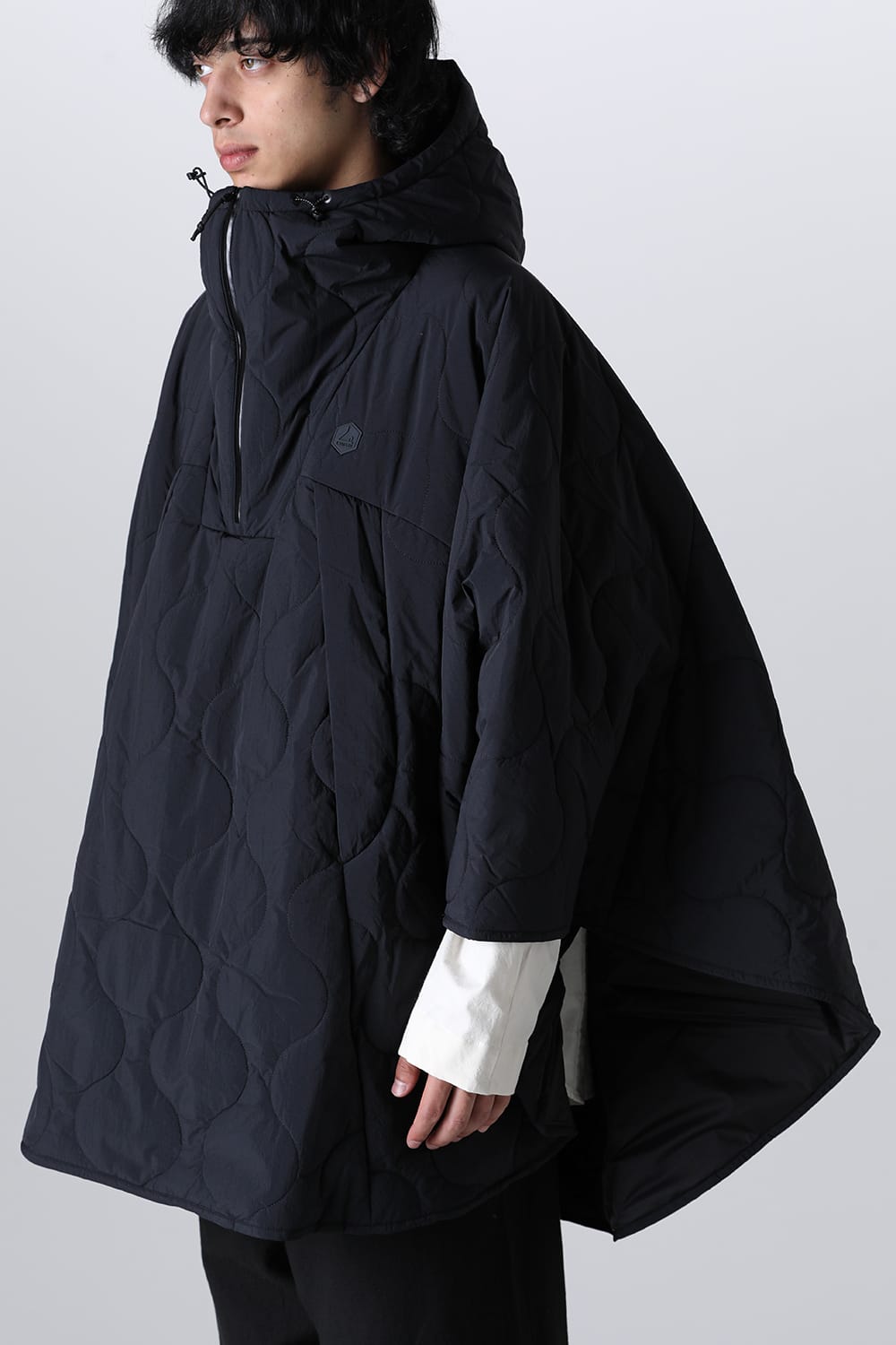 A pullover-style military poncho with wave quilting applied to the outer fabric along with padding.