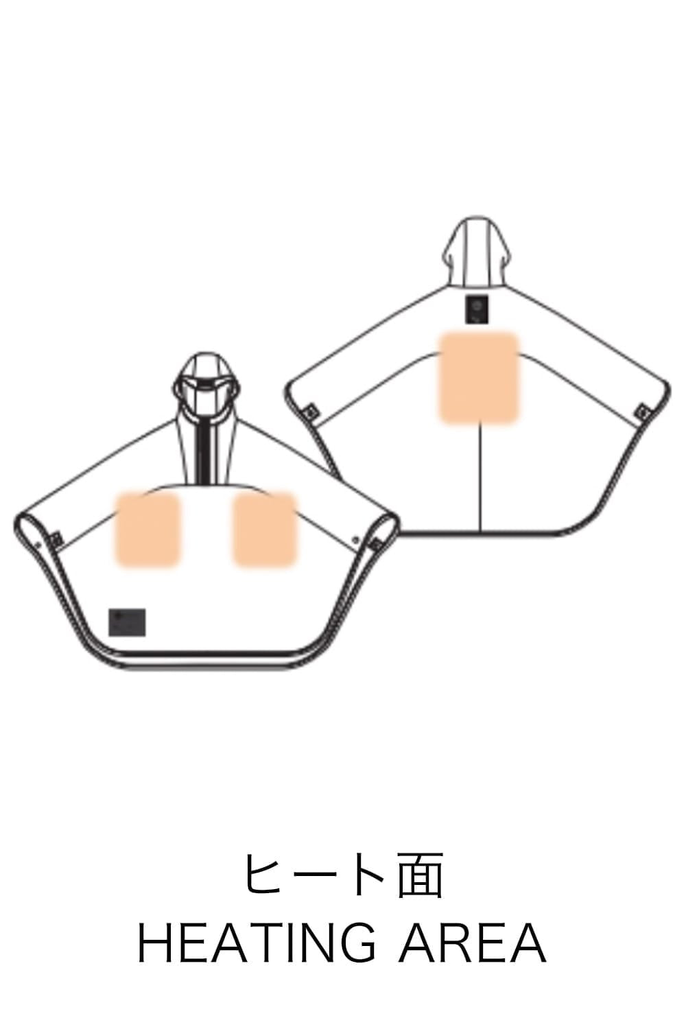 It is cotton padding wear that can adjust the temperature with the power supply temperature adjustment switch on the left sleeve. The heating device is a system that works by connecting the charging battery to the USB plug of the machine, and the switch changes color depending on the set temperature. The heat source is made from carbon fiber, and it warms from the core of the body by far-infrared ray effect. The operating time of the heating device varies depending on the battery capacity and temperature setting.