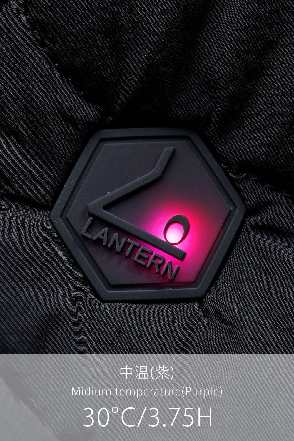 2: Press and hold the power switch on the chest for 2 to 3 seconds, and the LED will blink in 4 colors and the heating device will be activated. It heats up rapidly while red (Ultrahigh temperature) is flashing. It will automatically change to purple (medium temperature) after about 5 minutes without operating the switch.