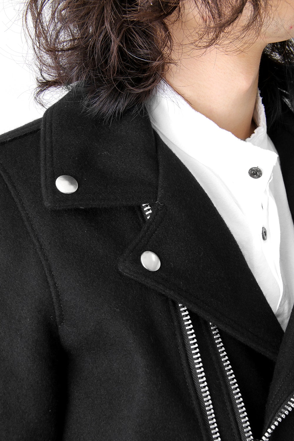 The sleeve opening, the hem and the collar upper part were cut-off and repaired for a rough impression. It has an aluminium fastener, the front has a double fastener you can use to modify the silhouette.