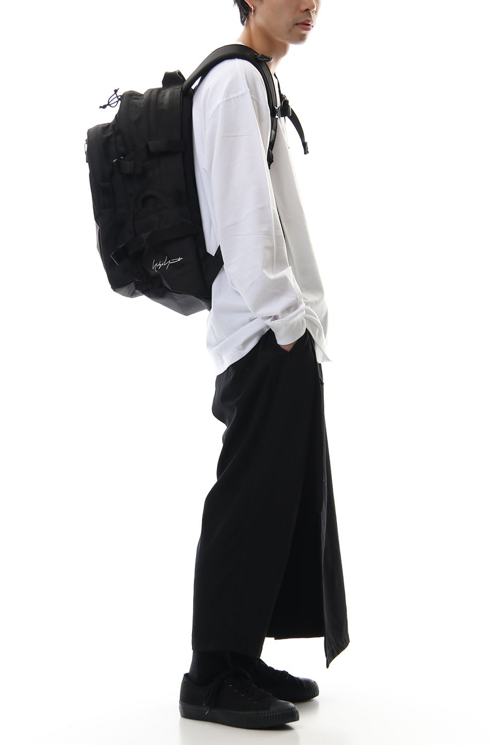The design is simpler than that of a regular carrier pack and the brown leather patch with the signature logo makes for a calm design.