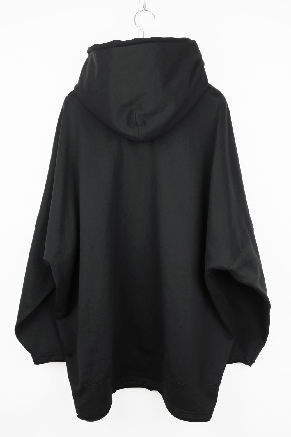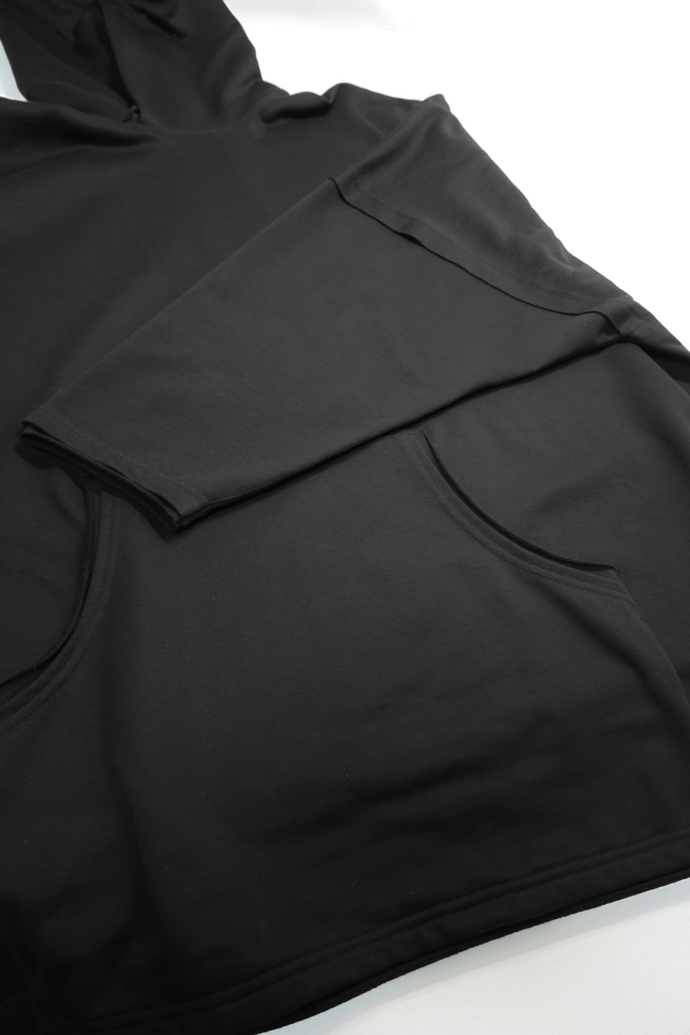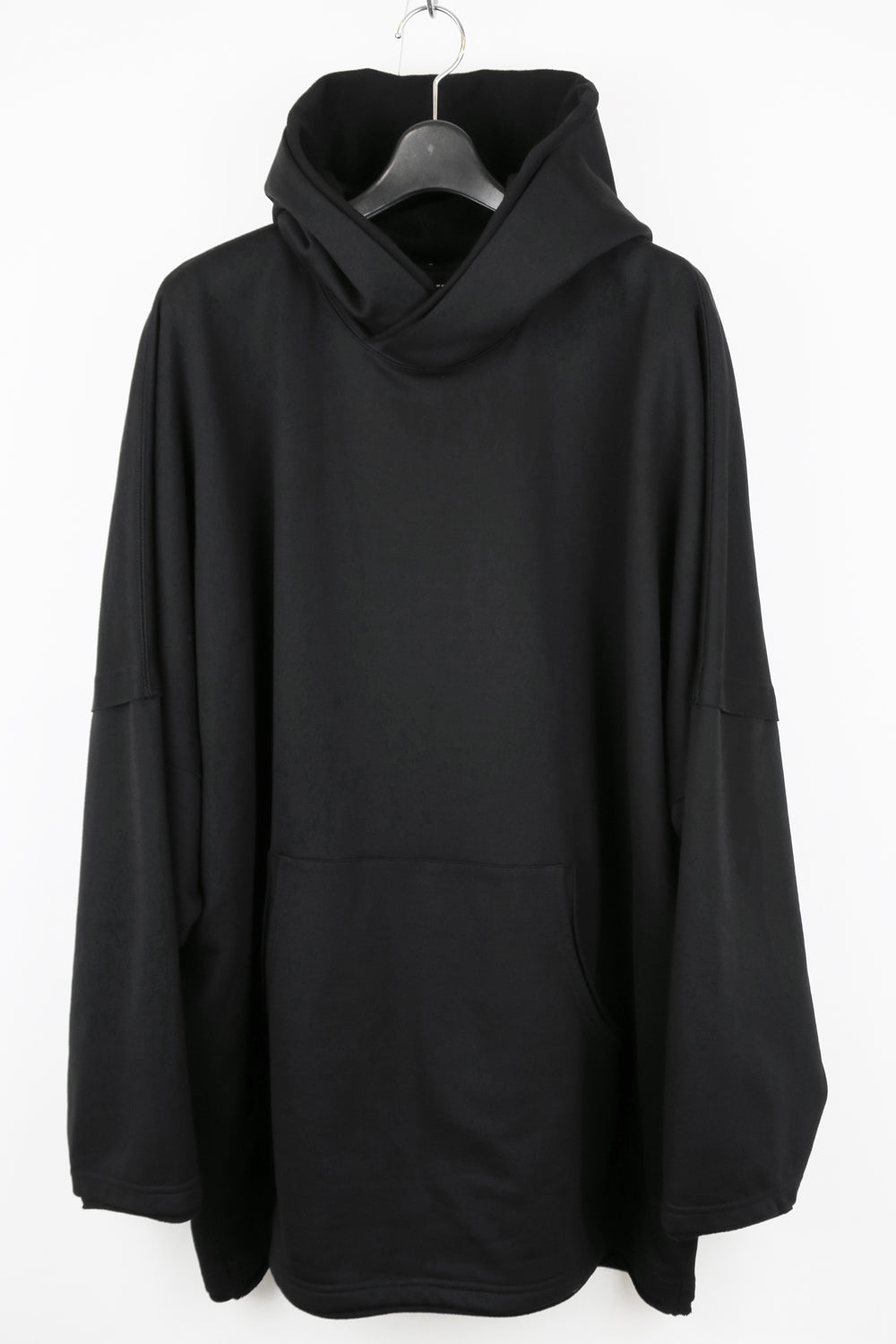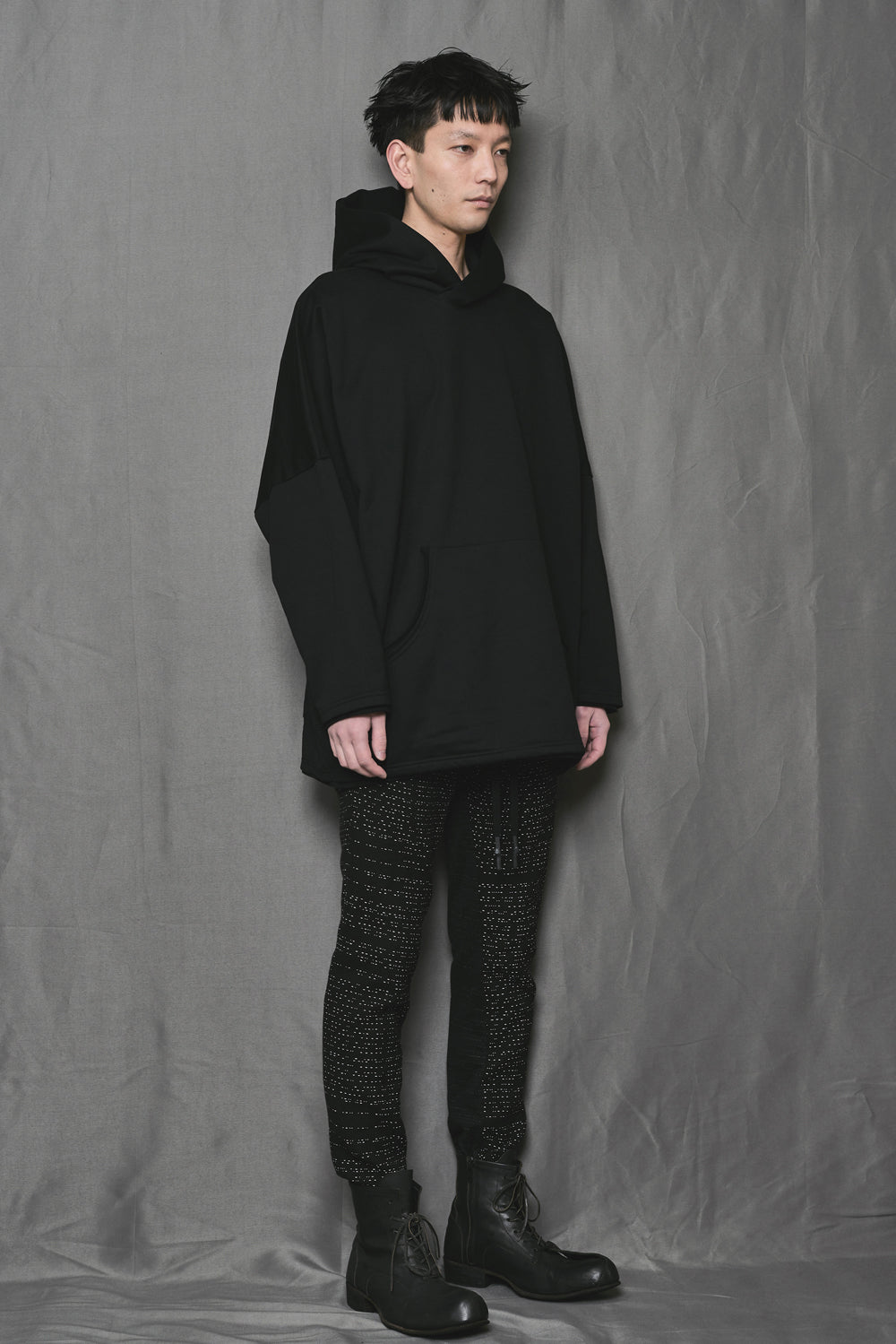 The hood and sleeves have a layered design, and the inside hood ends/cuffs/hem/pocket openings are cut off.