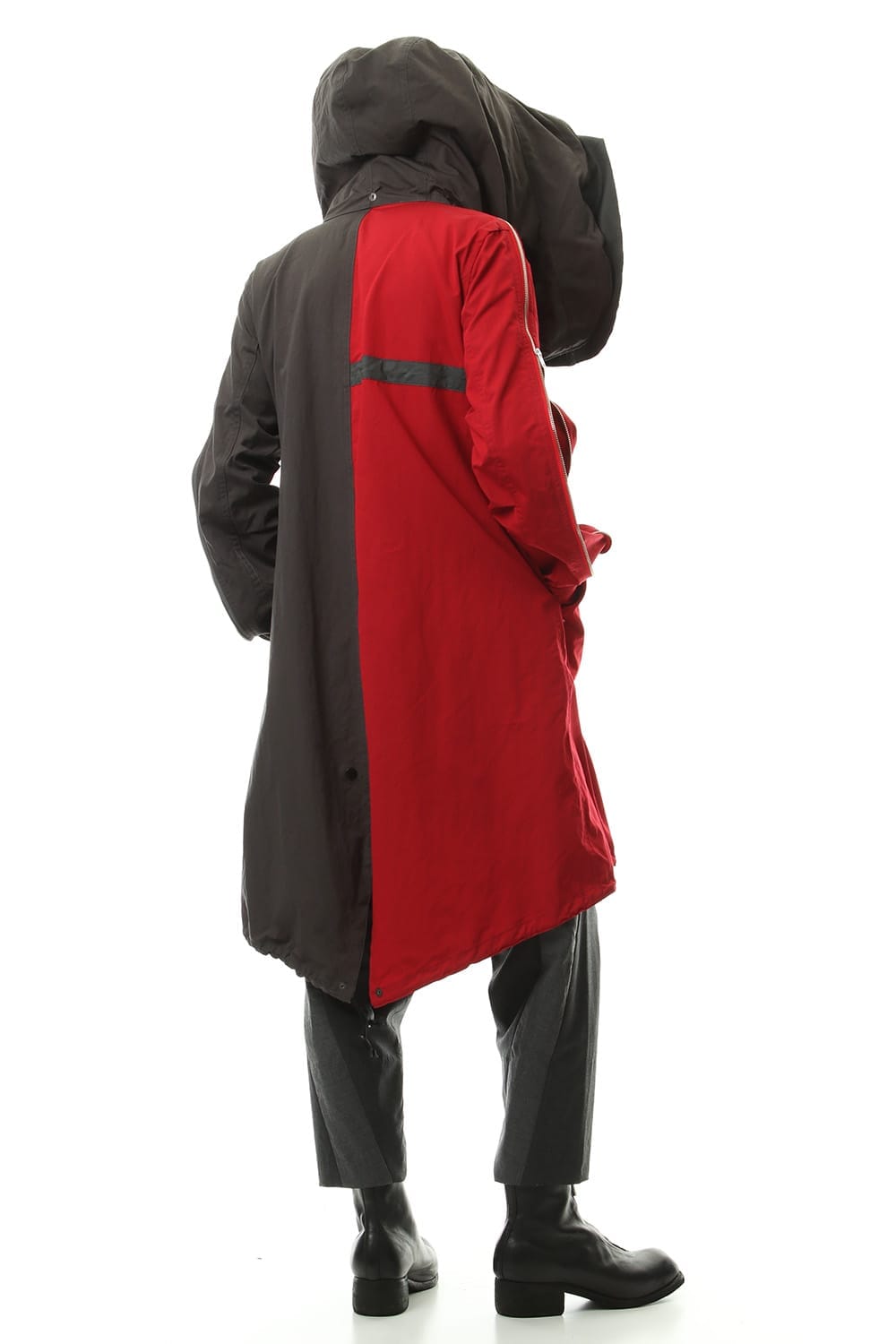 デザインは定番のモッズコートですが、左右の身頃をコンセプトにもなっている日本のアーティストのアルバムジャケットのように左身頃グレー、右身頃レッドで配色しています。