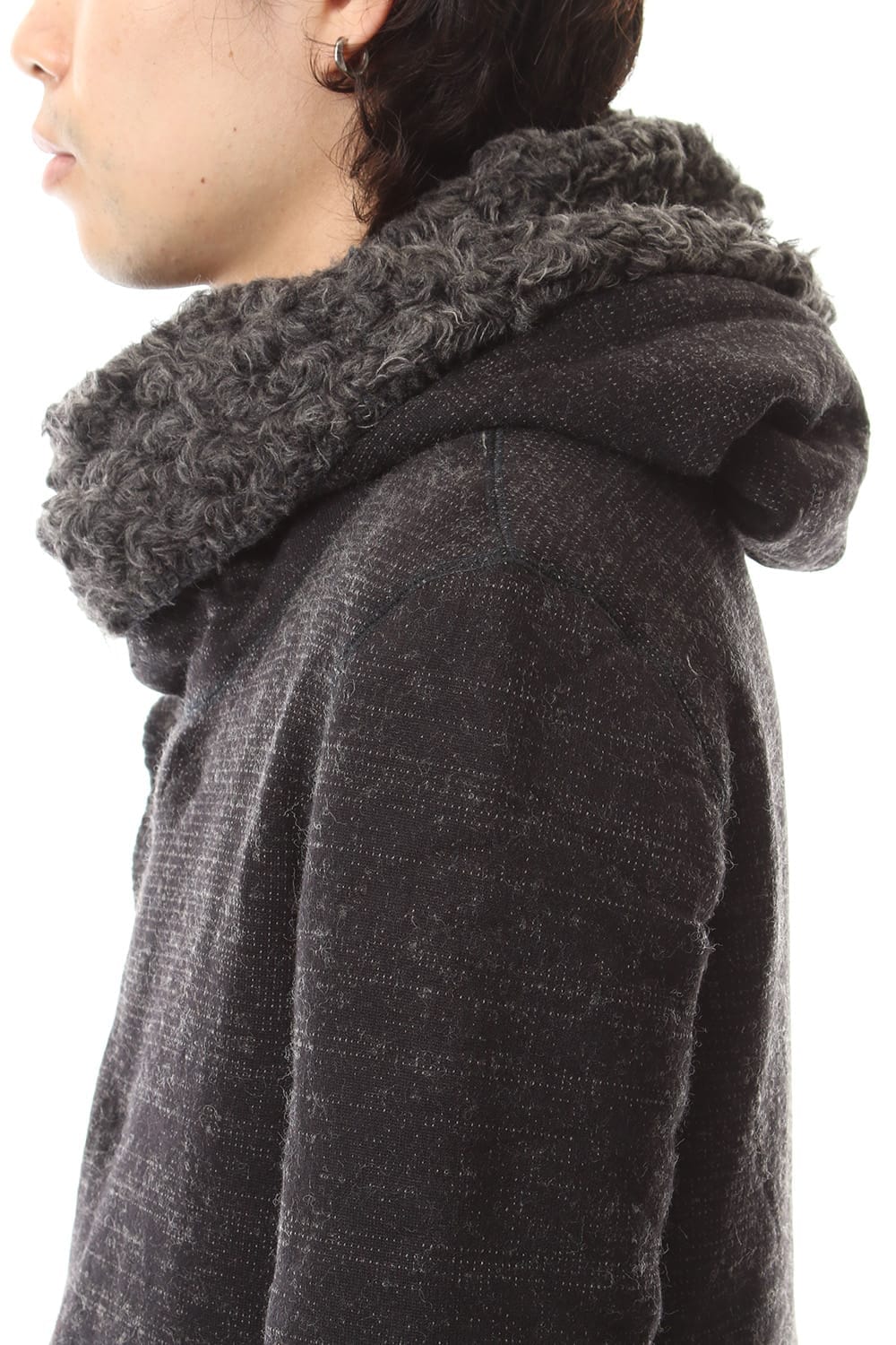 The hood has a large hood design, which is characteristic of NUDE and the silhouette of the body has a hem design inspired by a mods coat.