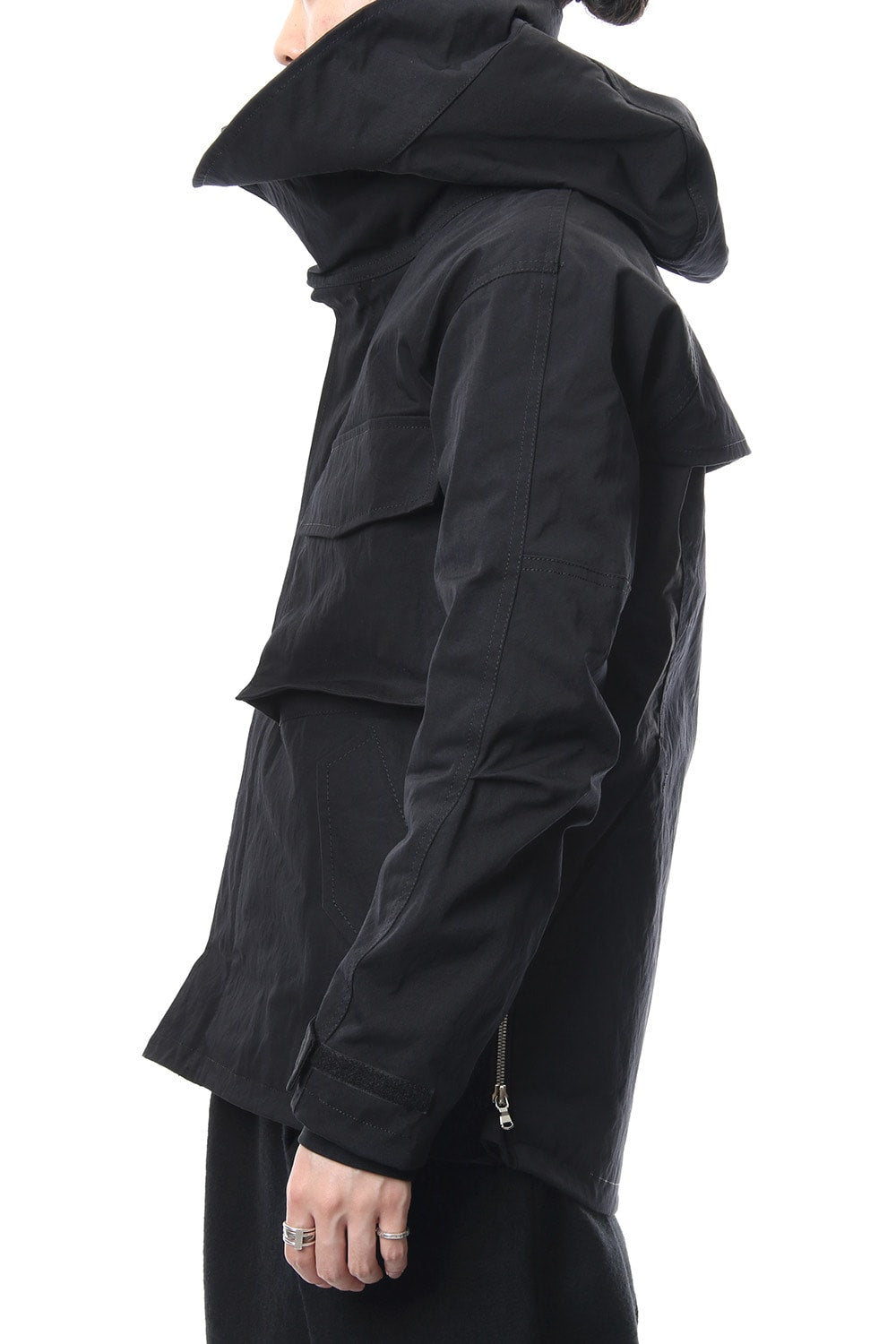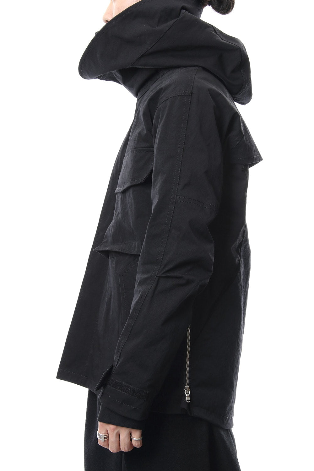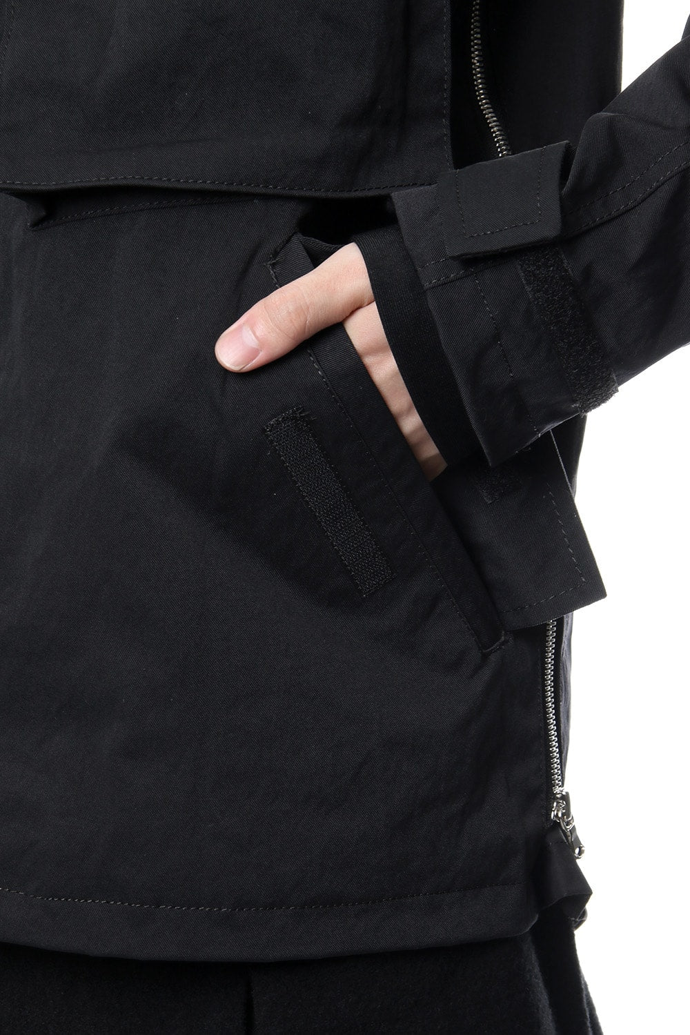Both sides back body hem has pockets