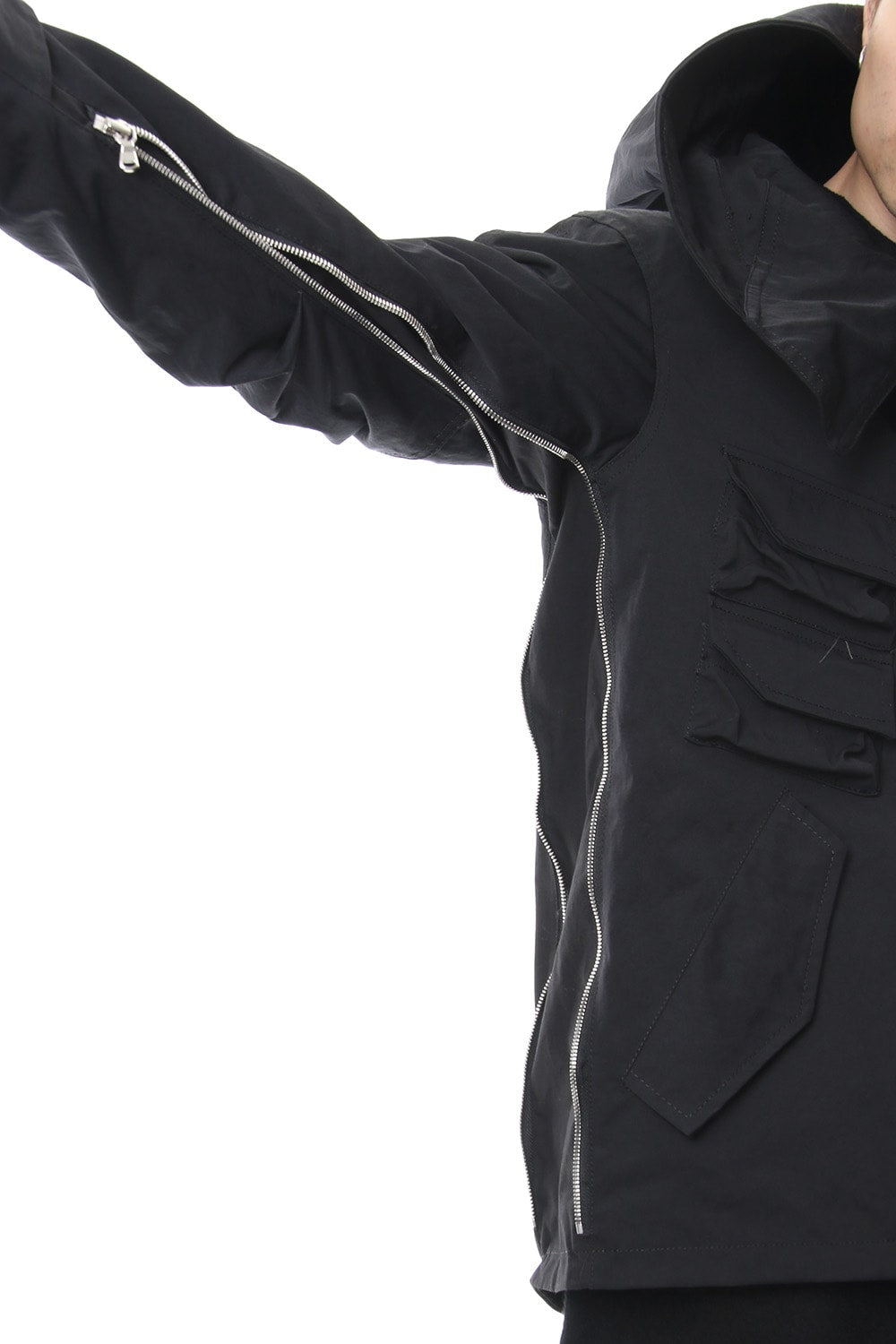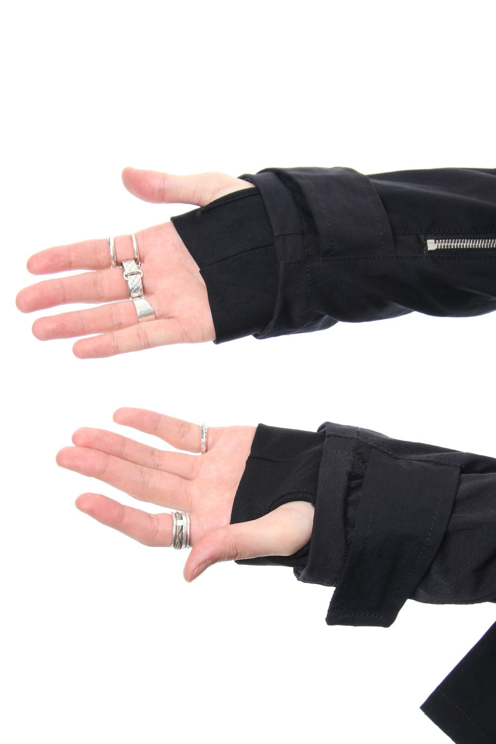 Fasteners connected from the cuffs to the body hem can adjust width sleeve width (Expandable)