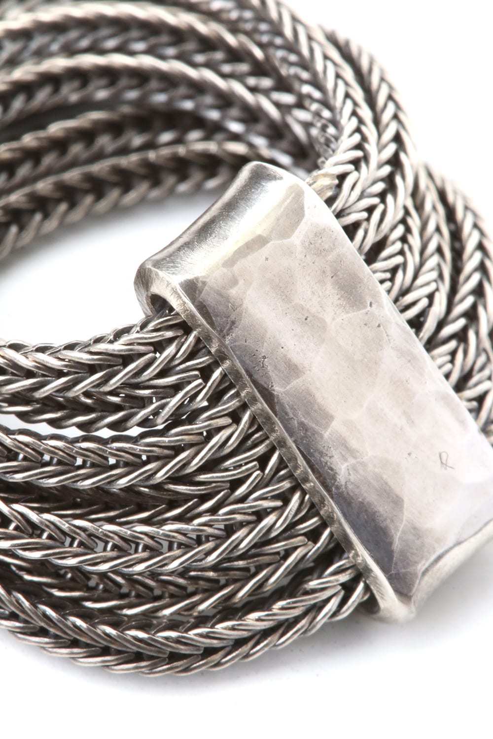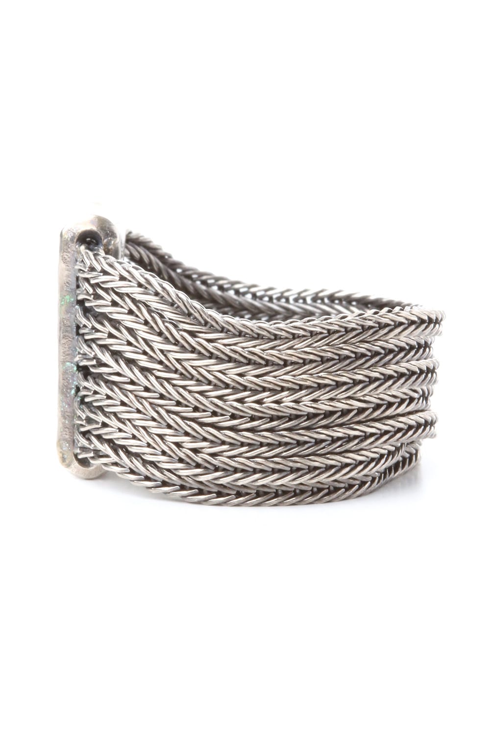 This is a unique iolom ring that delicately expresses the essence of Japanese that other brands have never done. It expresses a soft expression like cloth or thread in silver.