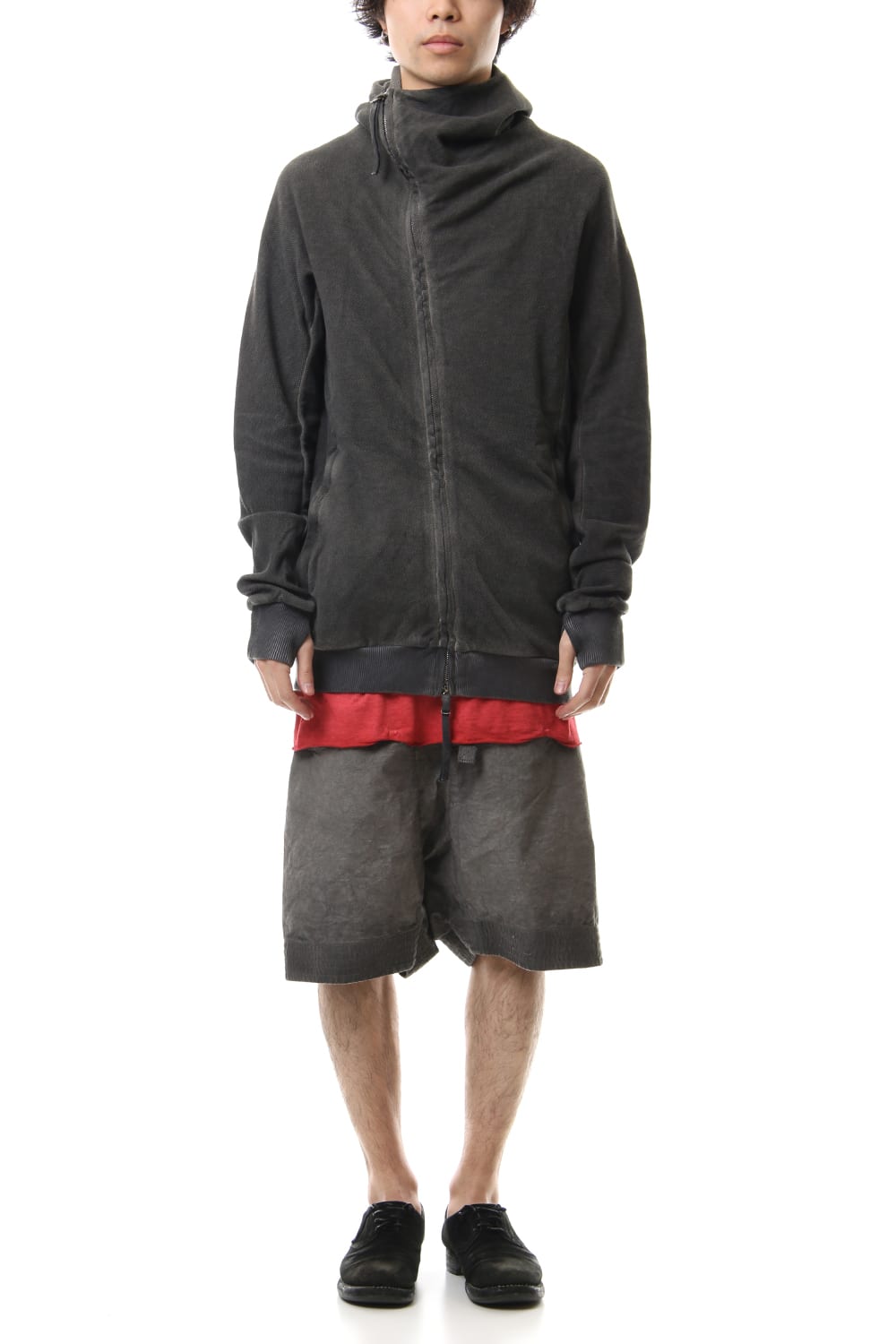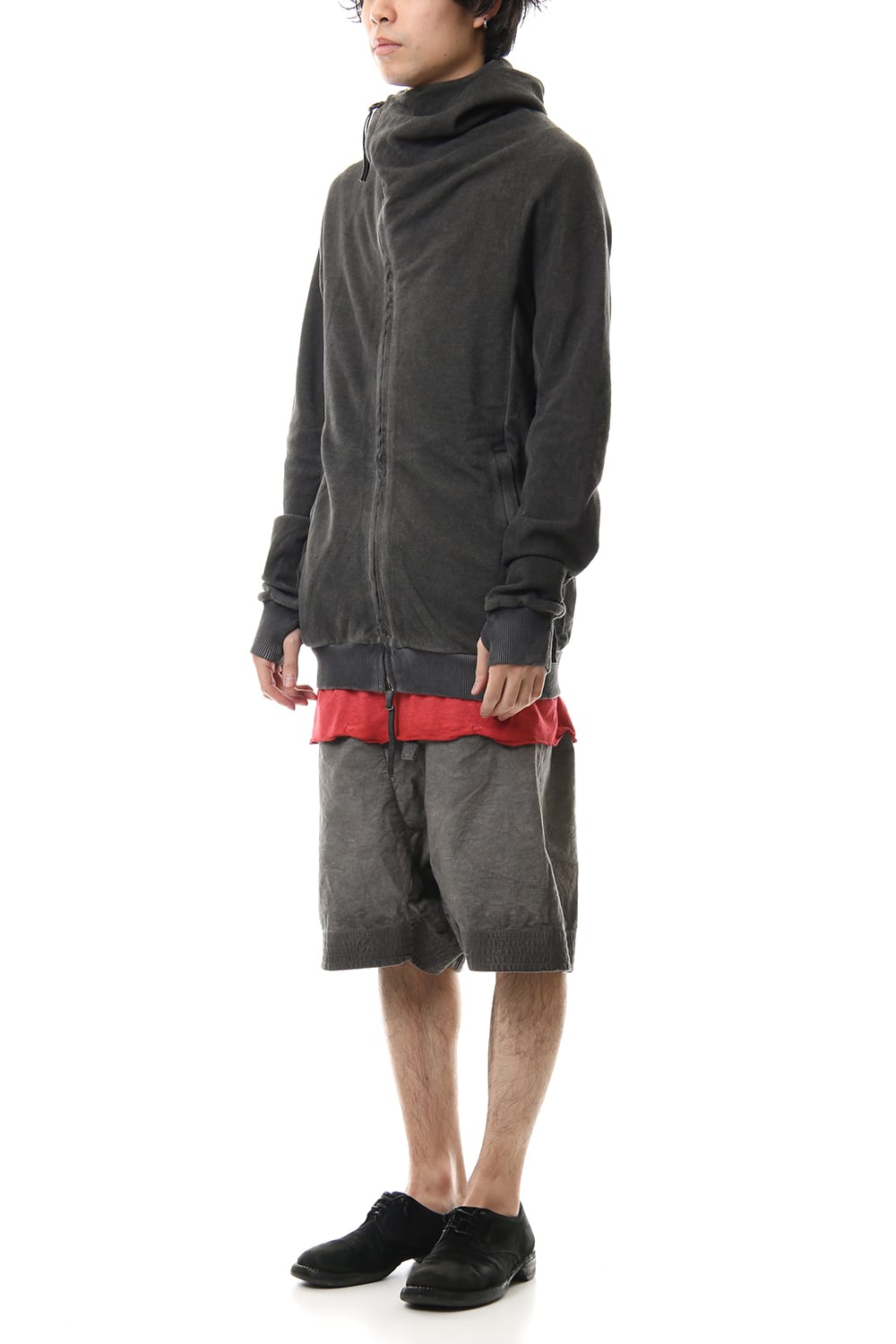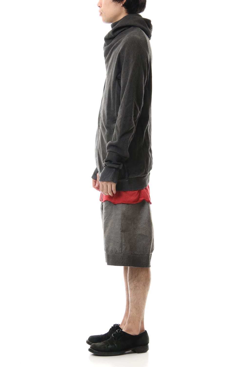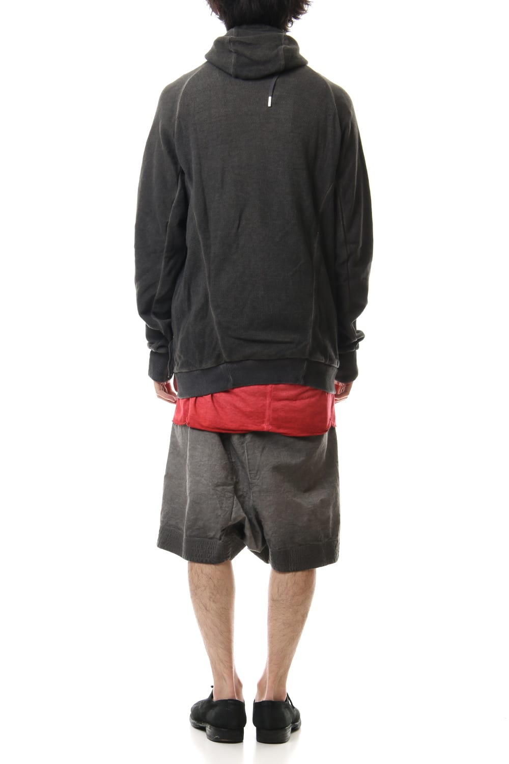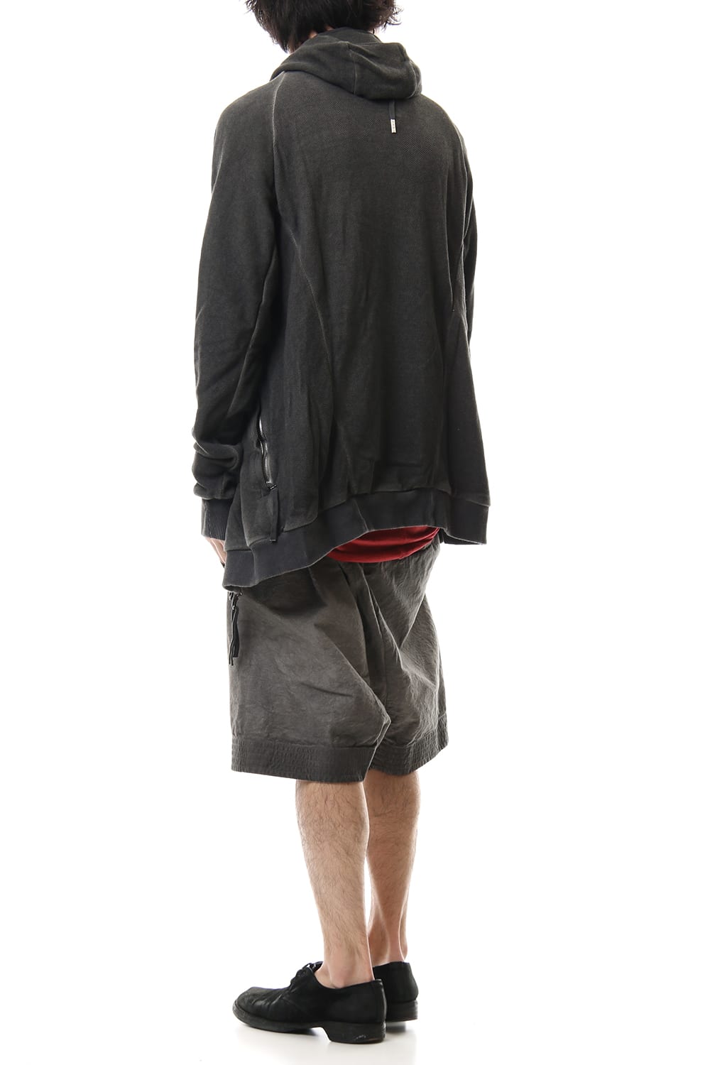 This is a pair of half pants with a wide silhouette that has a silhouette that spreads out due to the elastic cotton poplin fabric and the stitching on the hem. The waist is slightly large and the draw cord on the waist has a unique mechanism that allows it to fit inside the waist belt at both sides.