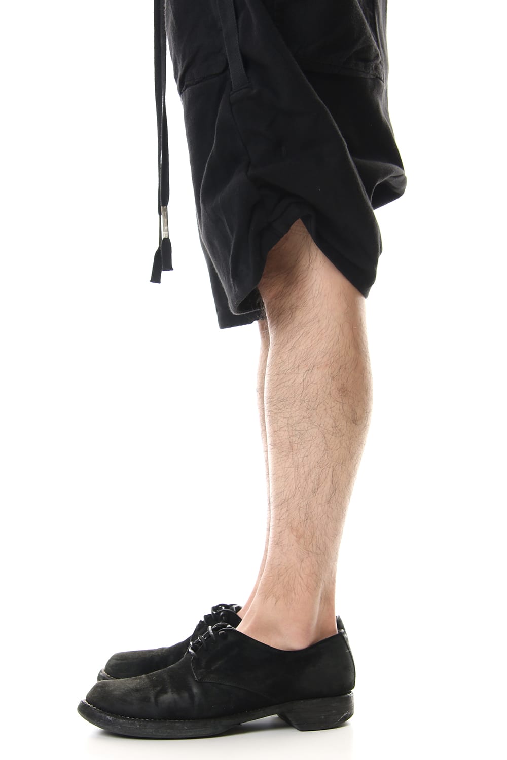 This is a half pants model of the full length pants P18 with details like between biker pants and jogger pants. A belt is arranged from the upper part of the pocket to the inside of the hem and by adjusting the length of the belt, gathering is made on both sides and the length can be changed a little.
