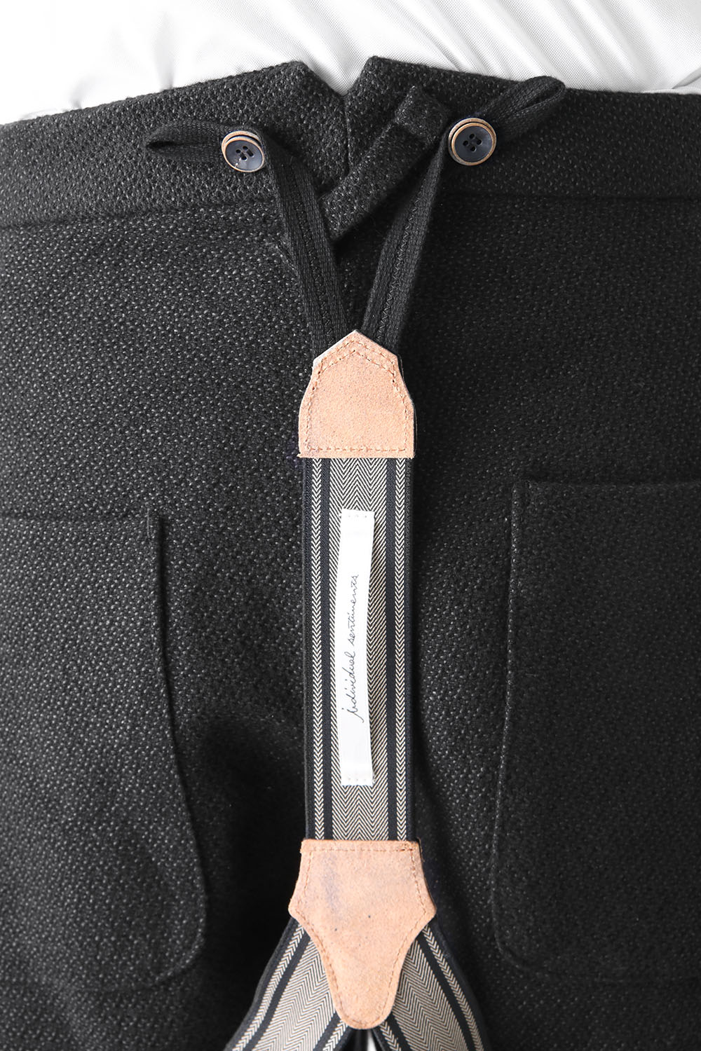 These wide pants are made with cotton linen dobby fabric and have suspenders that can be detached thanks to buttons. This superb impression fabric piece can be used during different seasons.