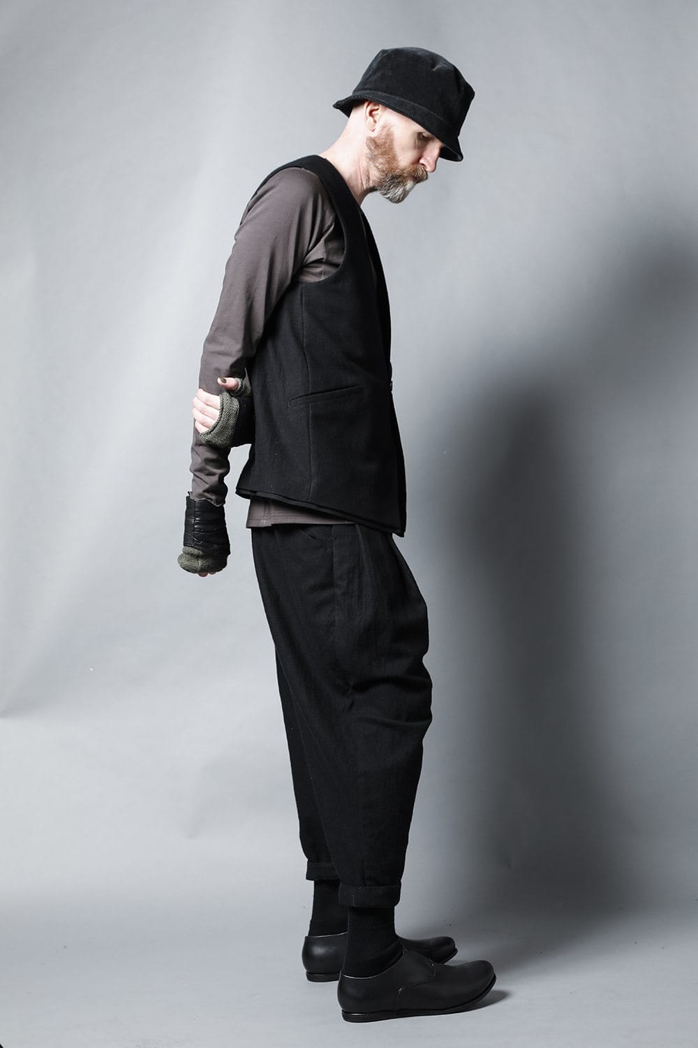 These cropped pants are made by Faliero Sarti in Italy. The fabric is made of virgin wool from CARIAGGI and has a unique texture with repeated fulling.