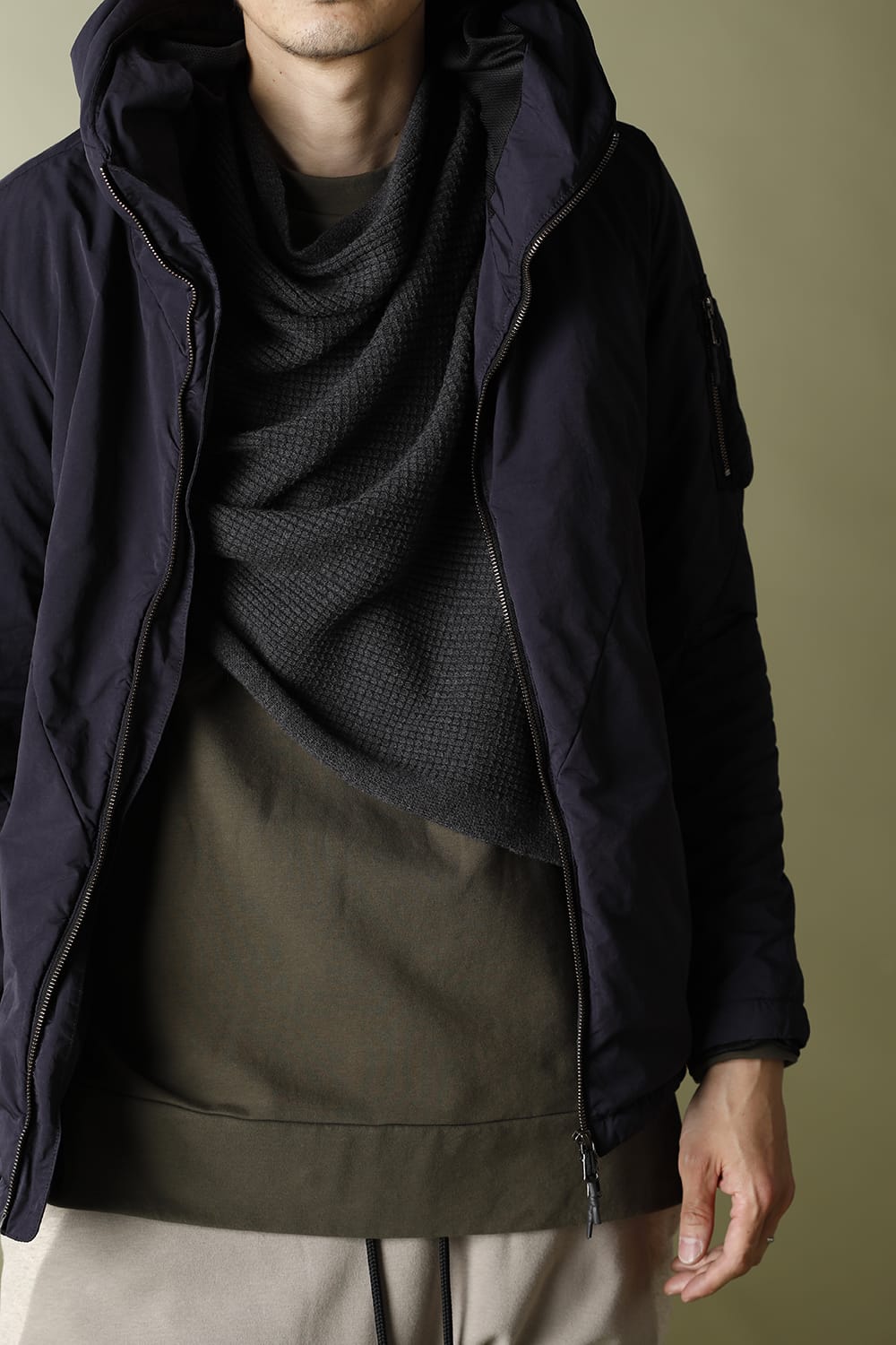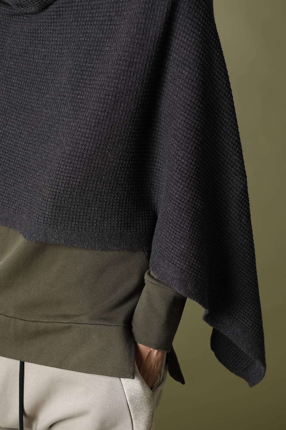 This is a 12 GG thermal knitted multi poncho made of the same thread as RB-329 cotton cashmere. This item can be worn in various styles such as poncho, snood and muffler.