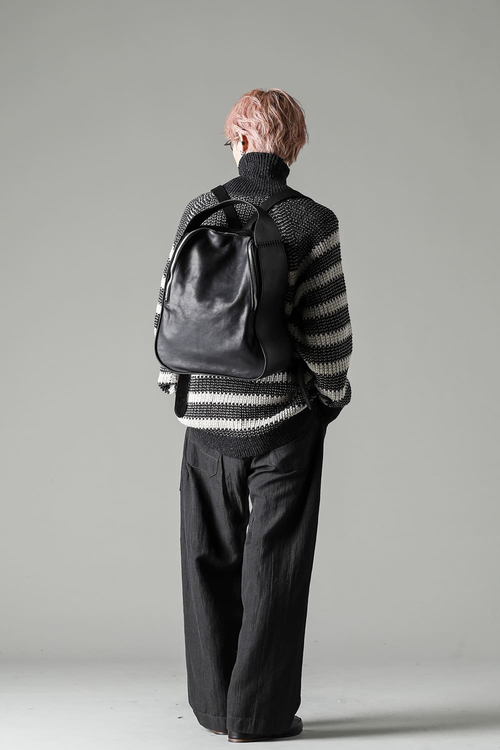 This backpack features an arched handle and a three-dimensional form. The use of large leather for each part that is typical of GUIDI is also impressive. The main specification is a pocket with a zipper on the inside. The size is about the same as a regular backpack, and this bag has a lining. It has a three-dimensional shape from the top to the bottom, but both sides and the bottom are sewn with a hard and thick leather part on the outside, so it does not lose its shape easily. In addition, it has a double zip opening that opens wide, and the gusset is wide, so it is easy to take out your items, and it is stable when you place it.