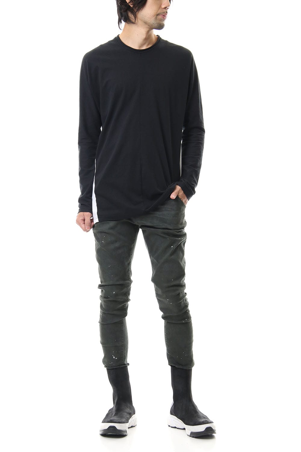 Dolman L/S with side bi colour. It is made of a new material called supima noil jersey and it is made of cotton that is from supiman cotton, a high class cotton from the United States.