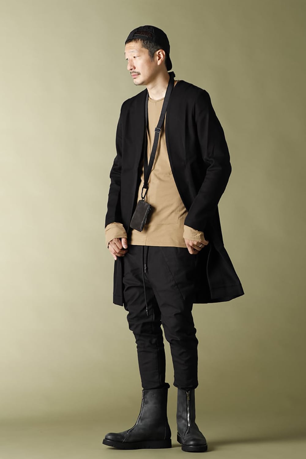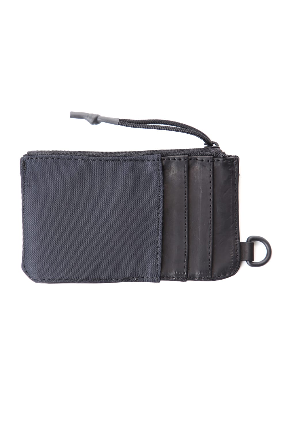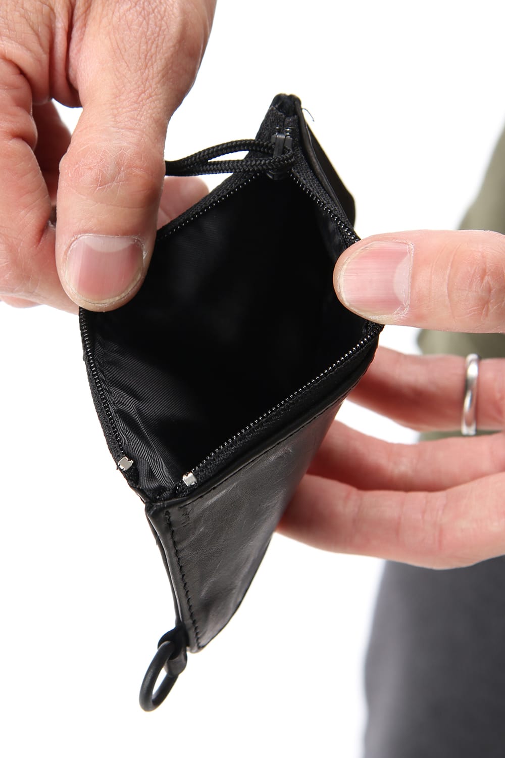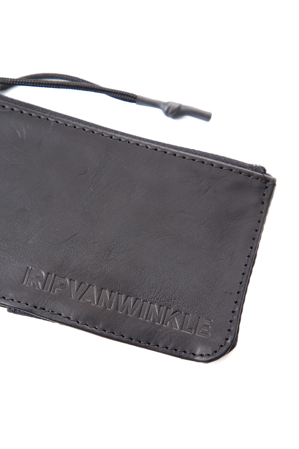 This multi-case is made from domestic raw leather (Leather of 3-month-old calves from Hokkaido). This item is a combination of calf leather and heavy nylon twill. It can also store credit/debit cards. Comes with a ring that can be worn with a neck strap cord.